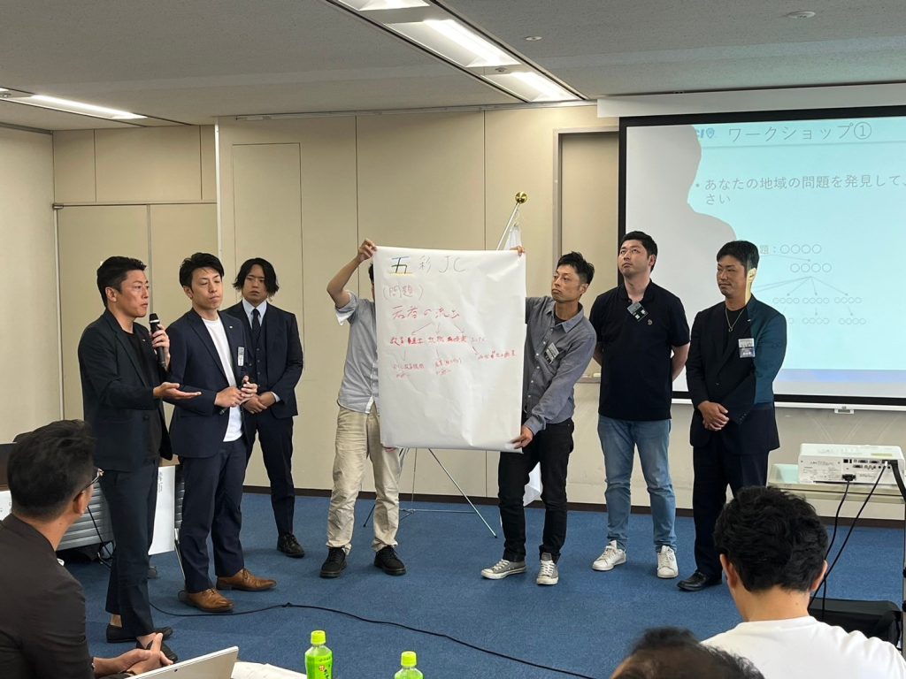 2日目は菅野譲顧問をお招きし、「分析編~社会課題解決~」「実践編~議案構築能力~」の2部構成でお話しいただき、「運動を起こすうえで大事なことは、実施しようとしている事業が明るい豊かな社会実現へ向けての課題解決になっているのかということ。また、その社会課題の原因となっているものは何なのかまで考えて事業構築をする必要がある」旨をお話しいただき、実際に議案書へ落とし込む作業までをご指導いただきました。受講者からは「現在、理事長所信を作成しているが、全部書き直す」との声もありました。