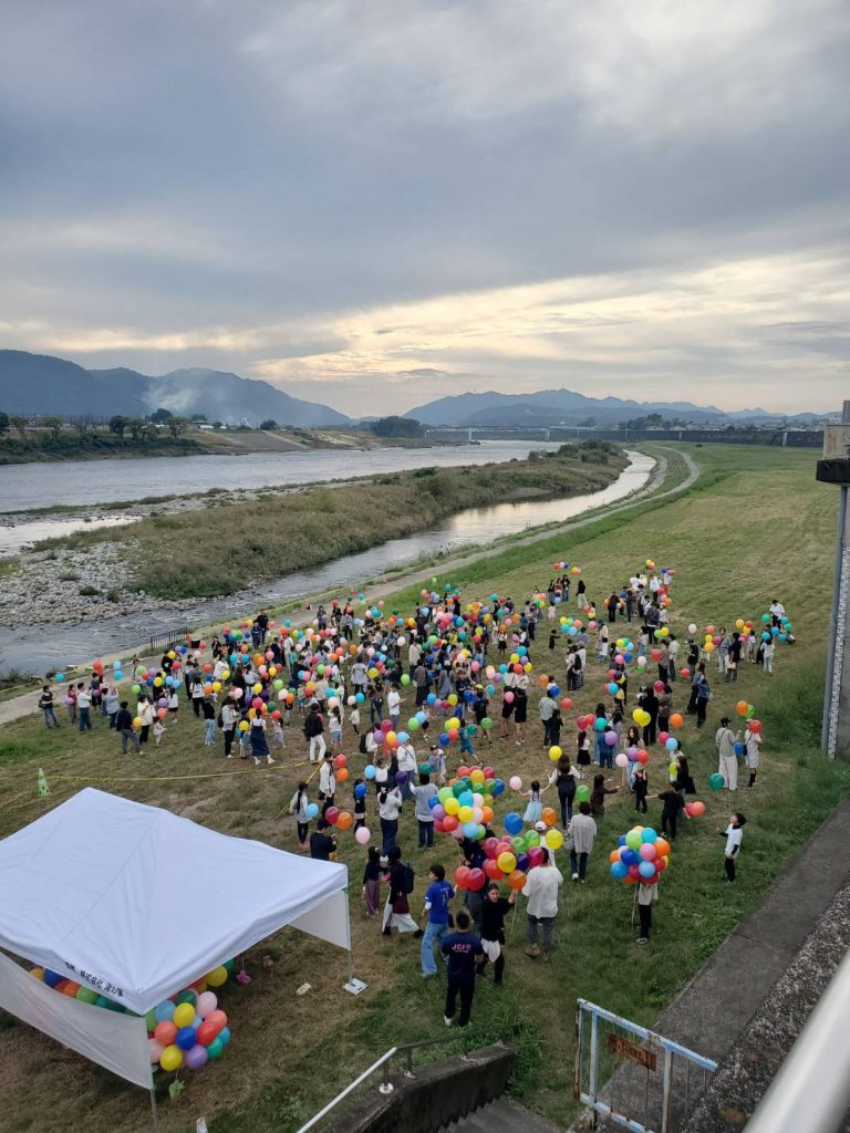『風船とばし』では、この地域への愛を込めて700個の風船を飛ばしました。