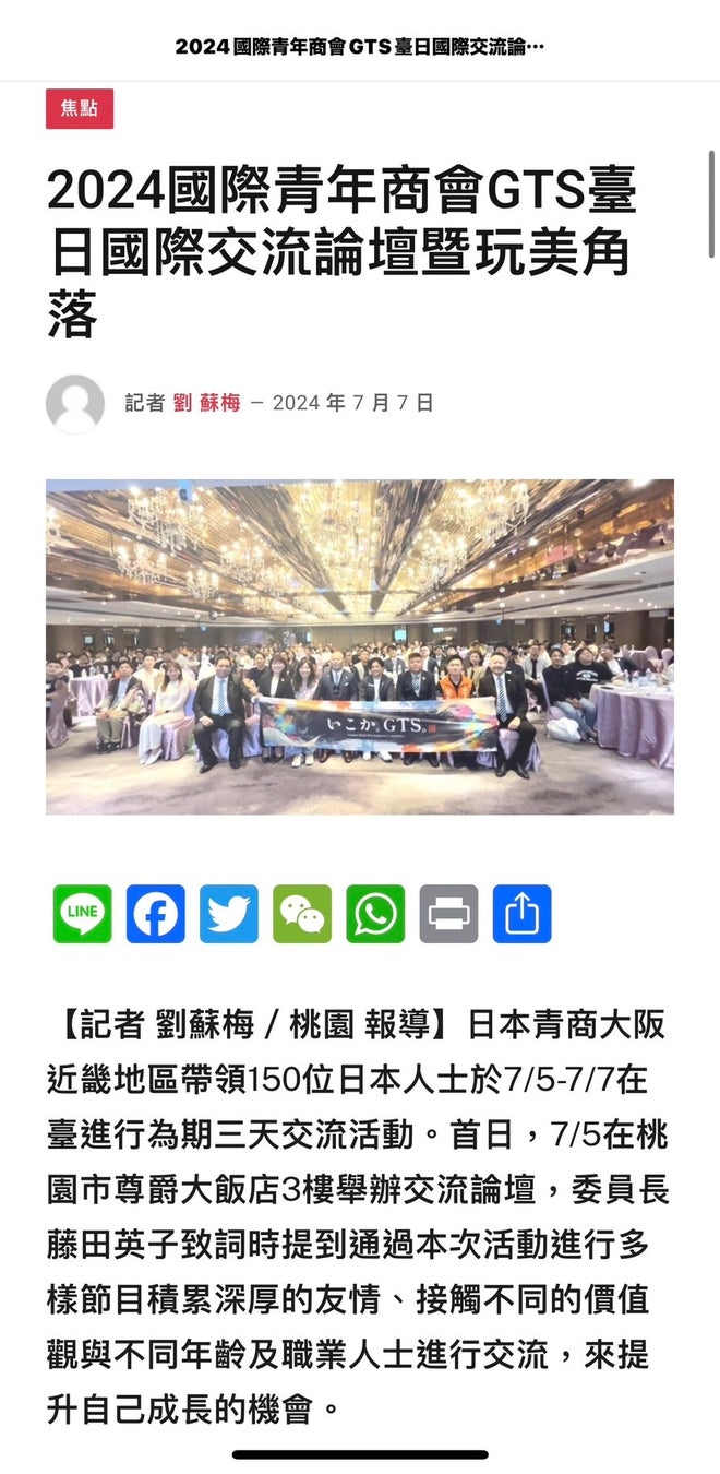 公益社団法人日本青年会議所近畿地区協議会が主催するGTS(グローバルトレーニングスクール)事業が7月5日(金)~7月7日(日)に台湾の地にて実施されました。