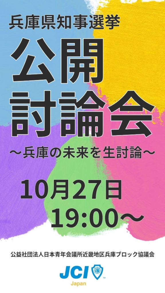 公益社団法人日本青年会議所近畿地区兵庫ブロック協議会では、兵庫県知事選挙の公開討論会を実施いたします。