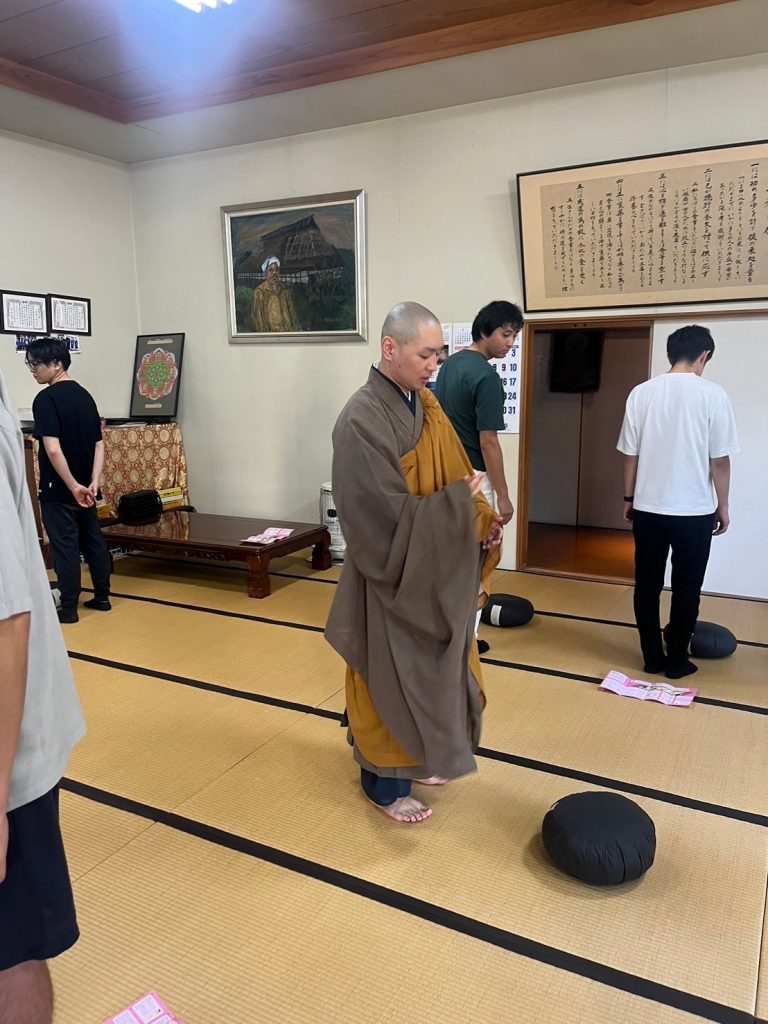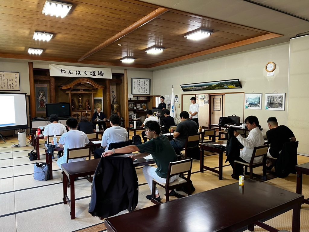 講師としてOBであり住職である木村高寛先輩をお招きし、「聞く力と伝える力を養う」をテーマにご講演をいただきました。今回はいつもと違いお寺が会場ということもあり、参加したメンバー全員がいつもより集中していました。