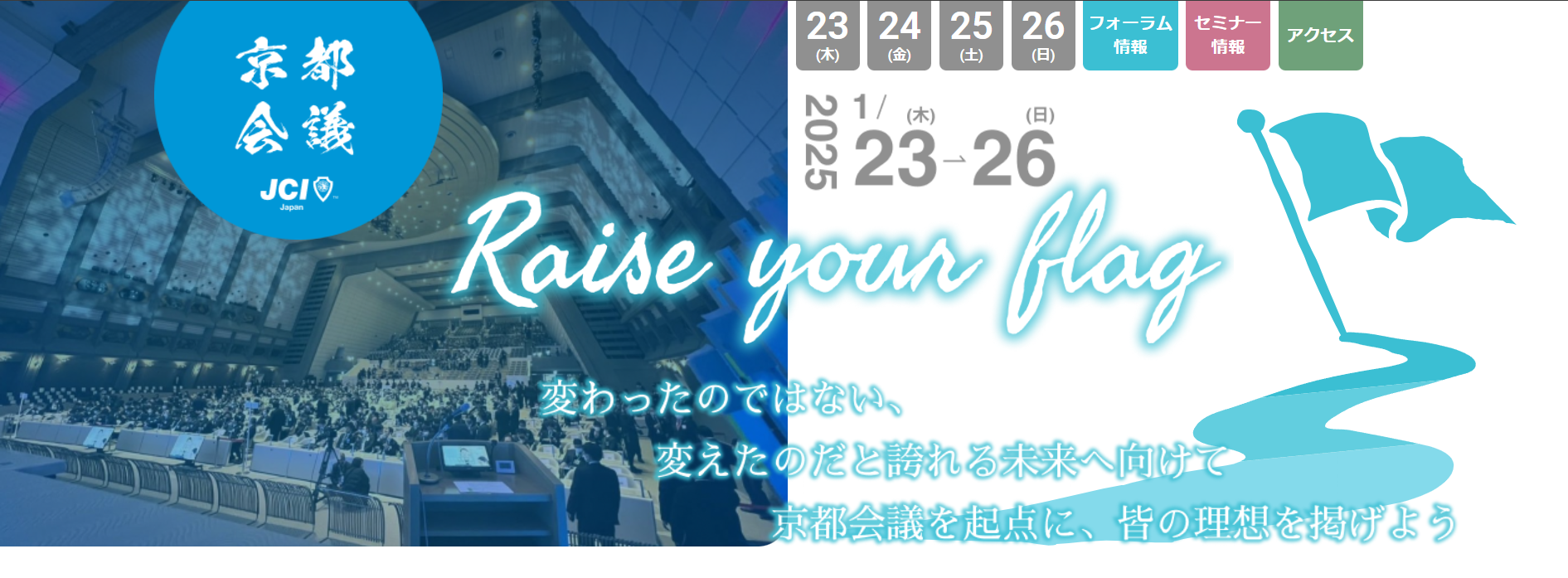 2025年1月23日~1月26日まで国立京都国際会館で開催された京都会議に、私たち大阪ブロック協議会は日本青年会議所が掲げるテーマ「Raise Your Flag」のもと参加いたしました。本会議では全国各地から青年会議所のメンバーが参加し非常に学びの多い会議になりました。