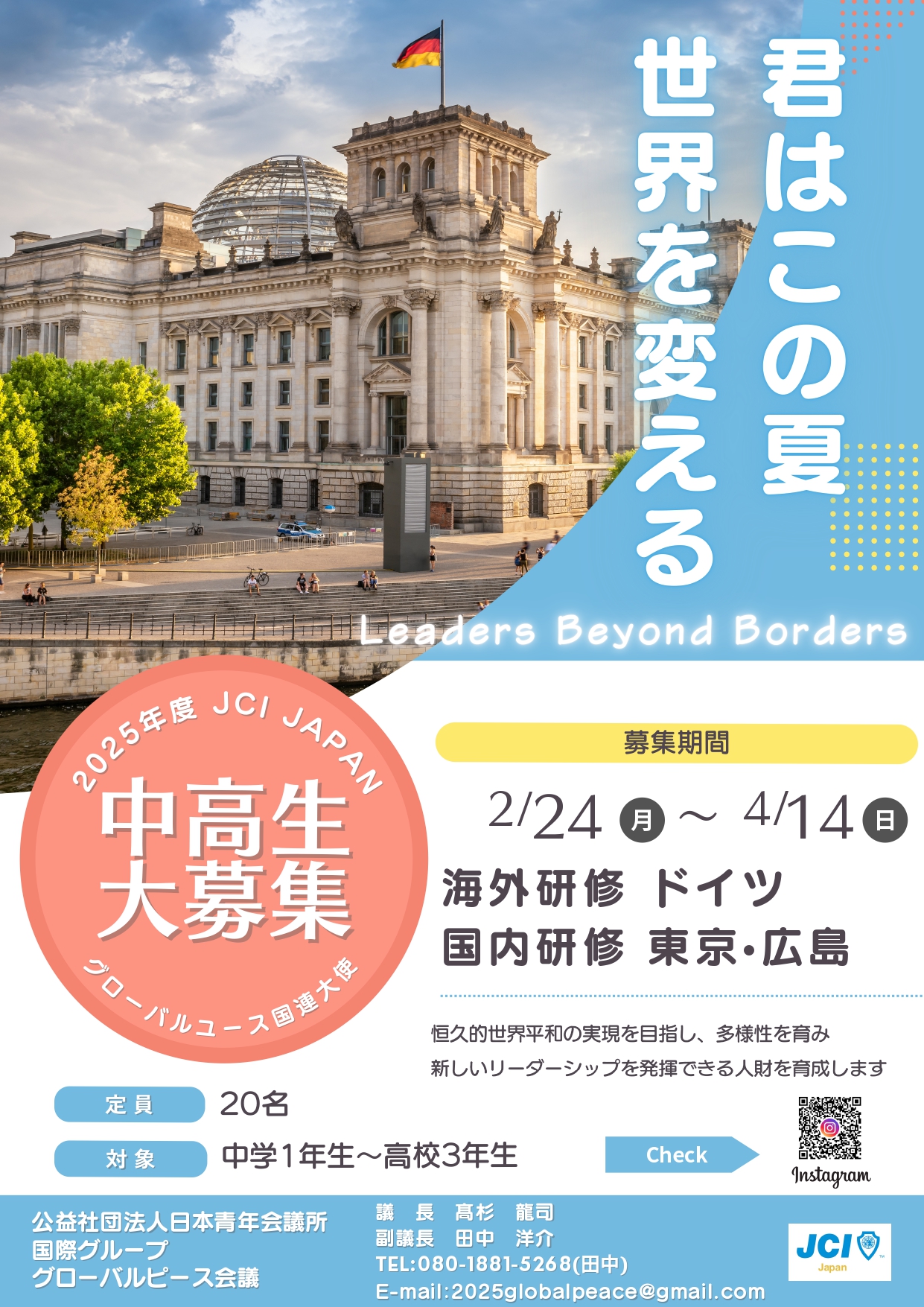 公益社団法人日本青年会議所 グローバルピース会議では国際社会に貢献し、将来の外交人財を育成する事業として、「JCI JAPAN グローバルユース国連大使」を開催します!