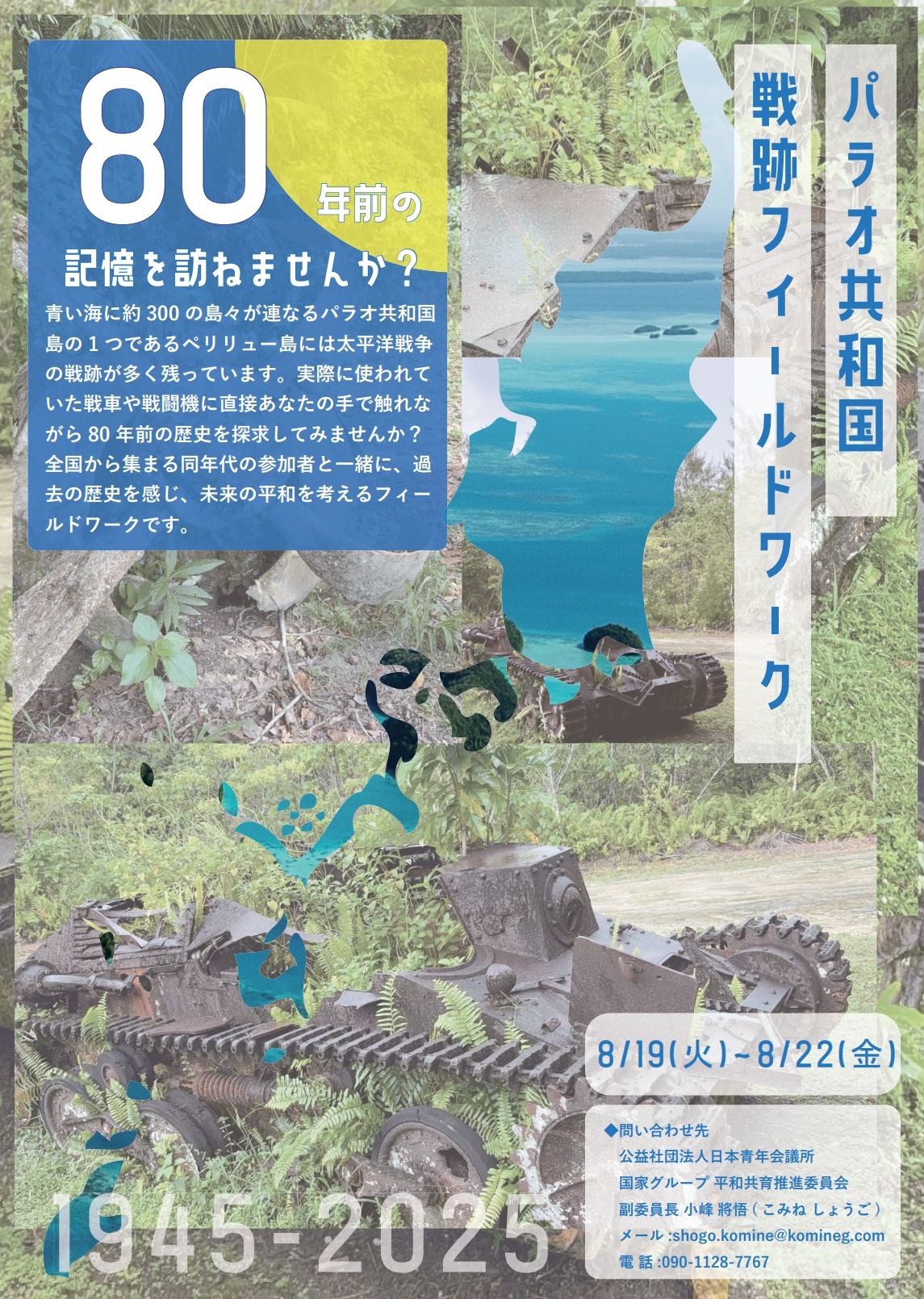 日本JC2025年度平和共育推進委員会では将来の平和へ寄与する人財を育成する事業として「パラオ共和国戦跡フィールドワーク」を開催します!