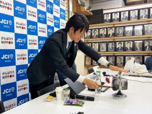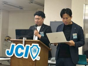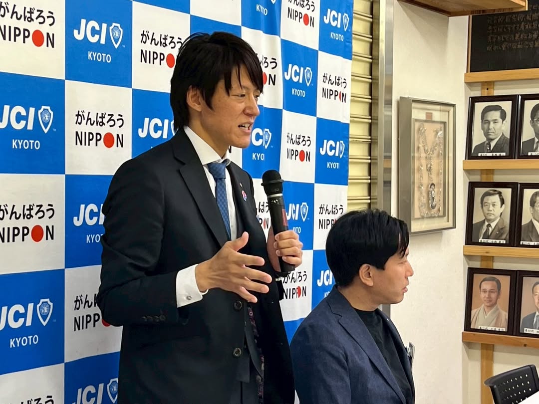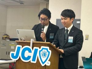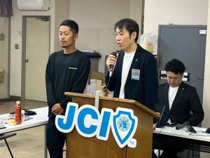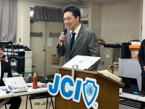 また、開催地LOMである京丹後青年会議所より、巽理事長にお越しいただき、ご挨拶とご当地のお菓子を頂戴しました。巽理事長、誠にありがとうございました。