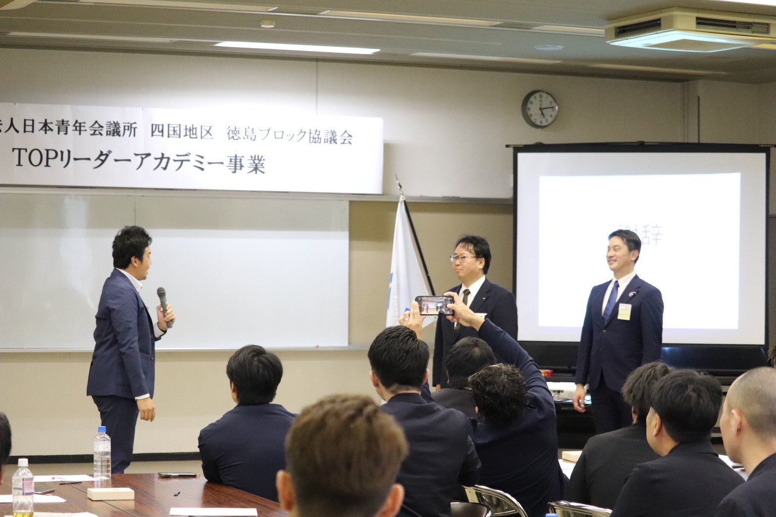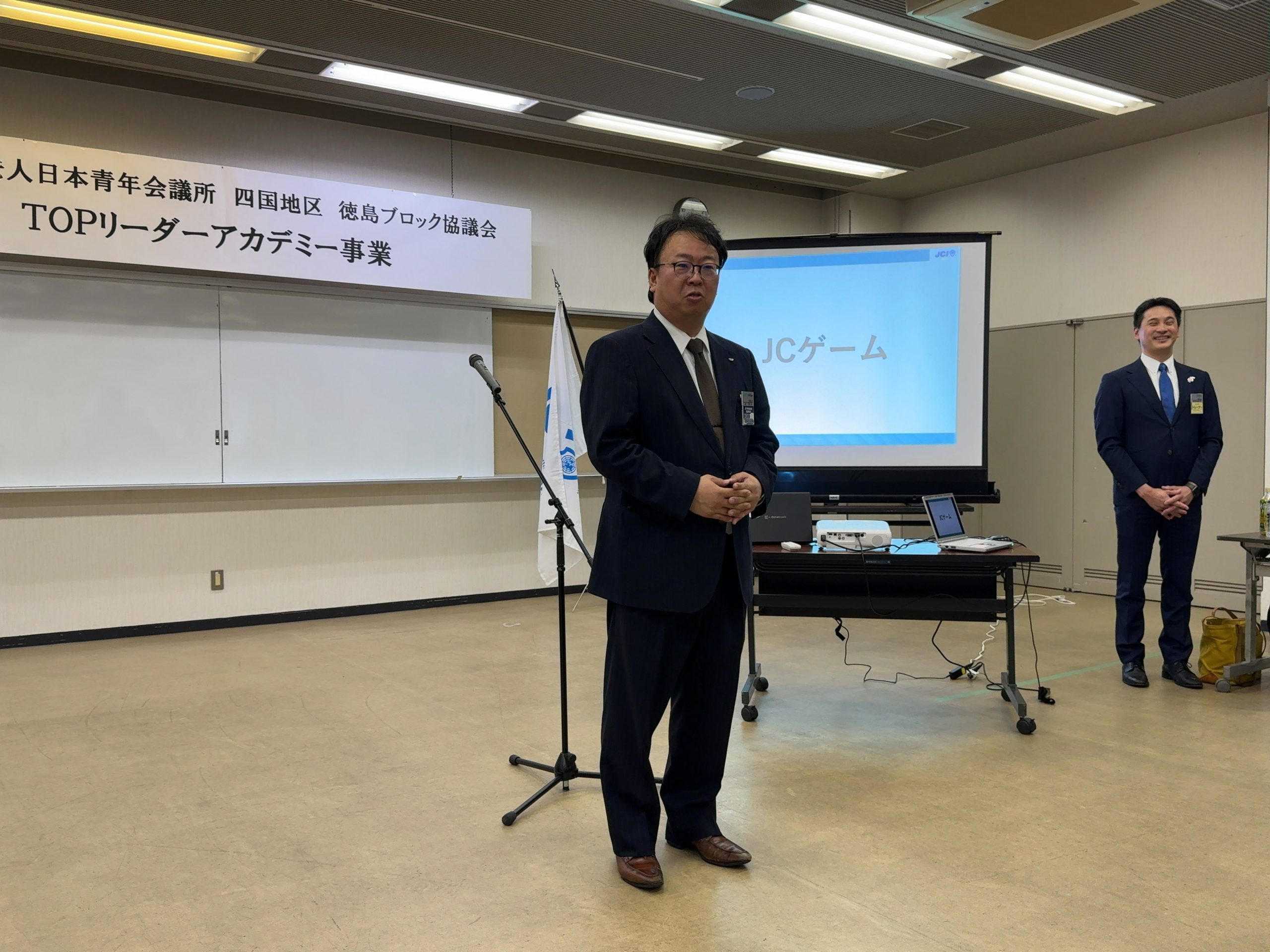 そしてJCゲーム後、休憩をはさみ徳島ブロック協議会内各地青年会議所理事長たちによる「青年会議所の理事長とは?」をテーマに、参加者に向けご講演いただきました。