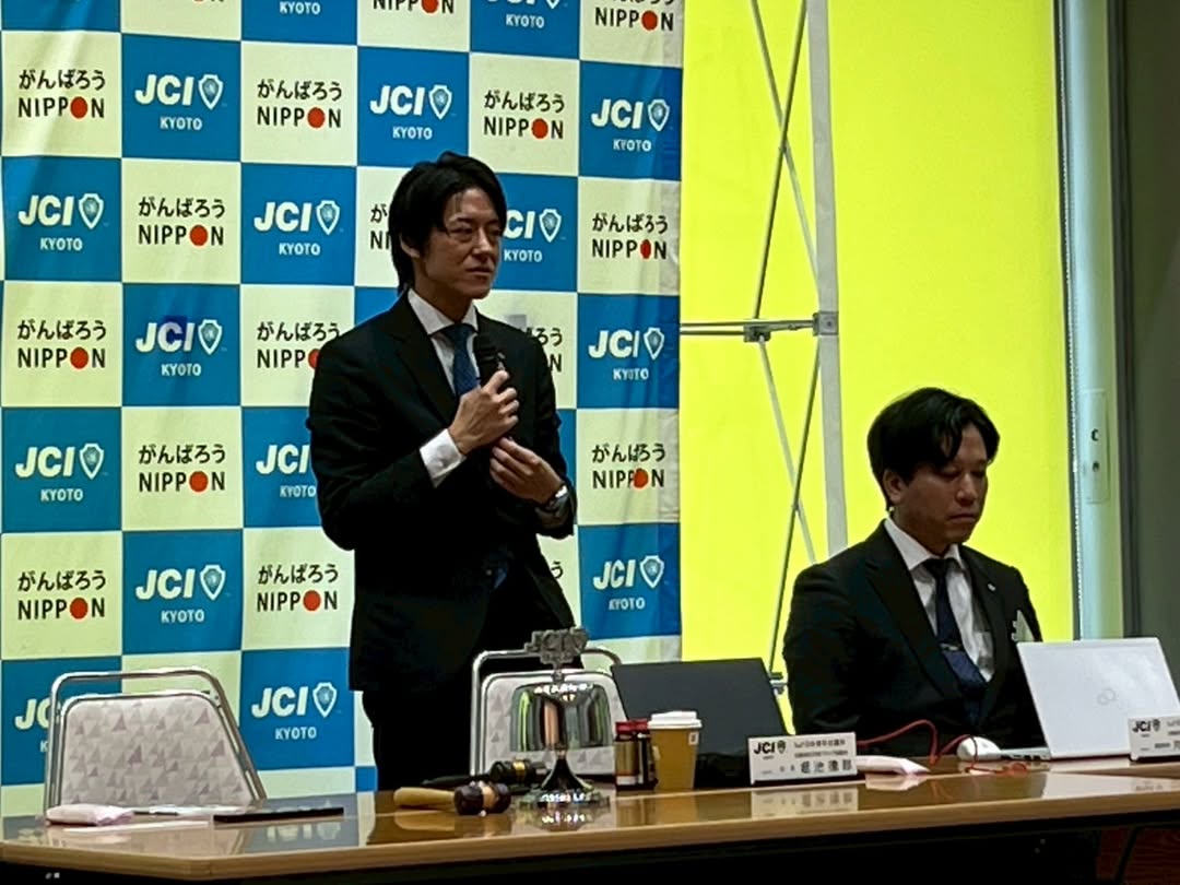さらに、開催地LOMである亀岡青年会議所、田中理事長より、ご挨拶とご当地のお菓子を頂戴しました。田中理事長、誠にありがとうございました。