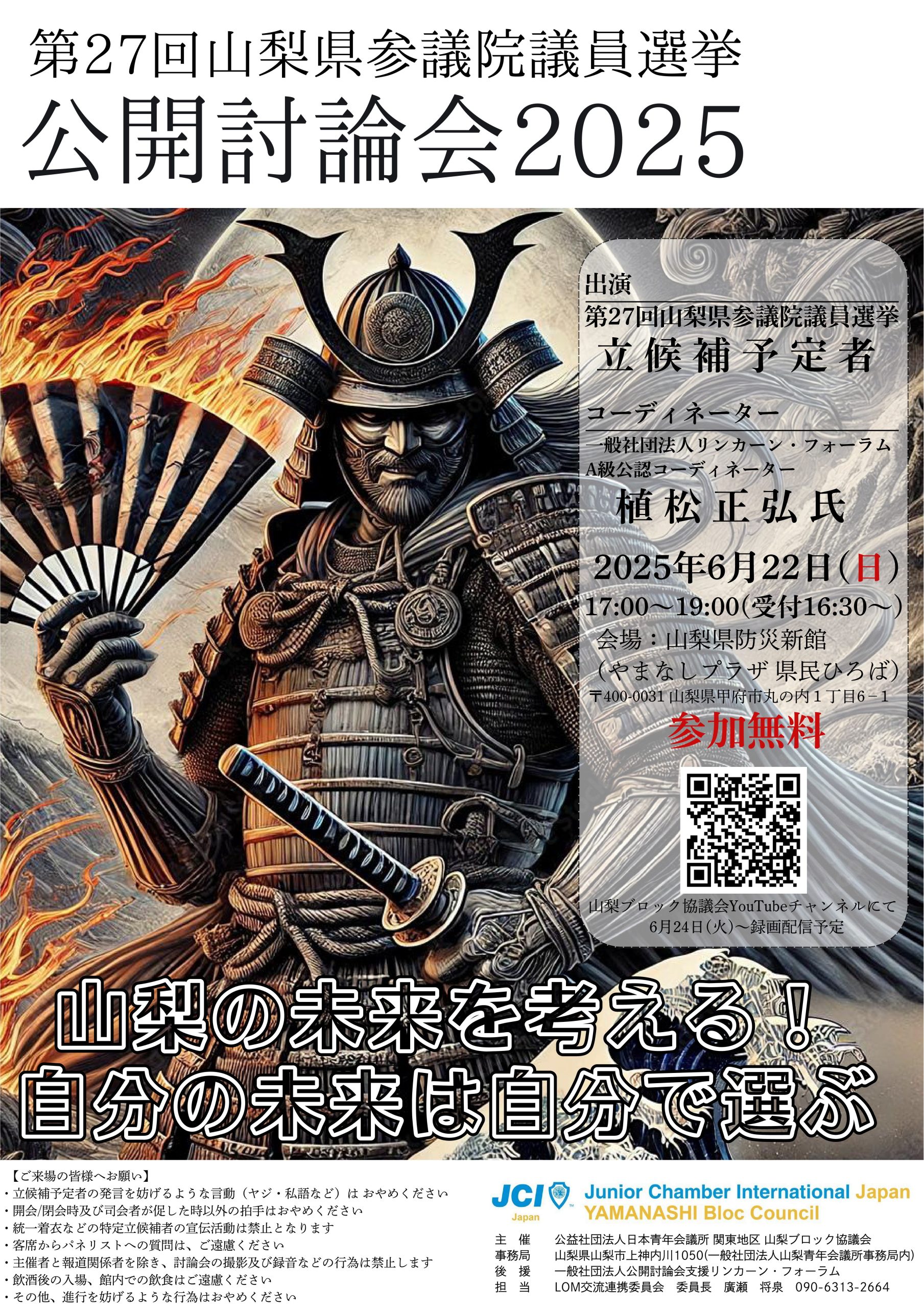 「第27回山梨県参議院議員選挙 公開討論会2025」を開催いたします。