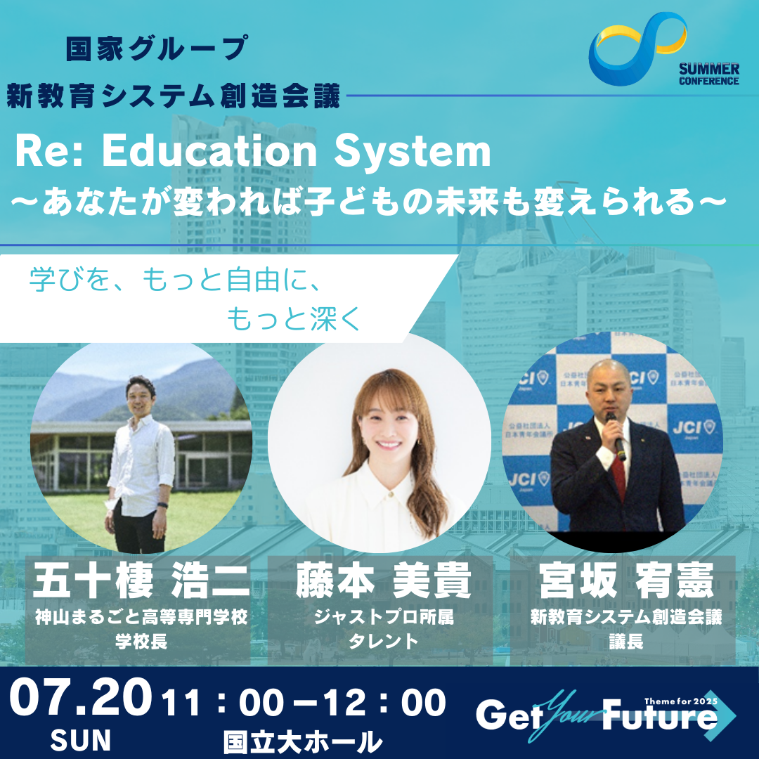 2025年7月20日(日)11:00よりパシフィコ横浜 国立大ホールにて、「Re: Education System~あなたが変われば子どもの未来も変えられる~」を開催します。