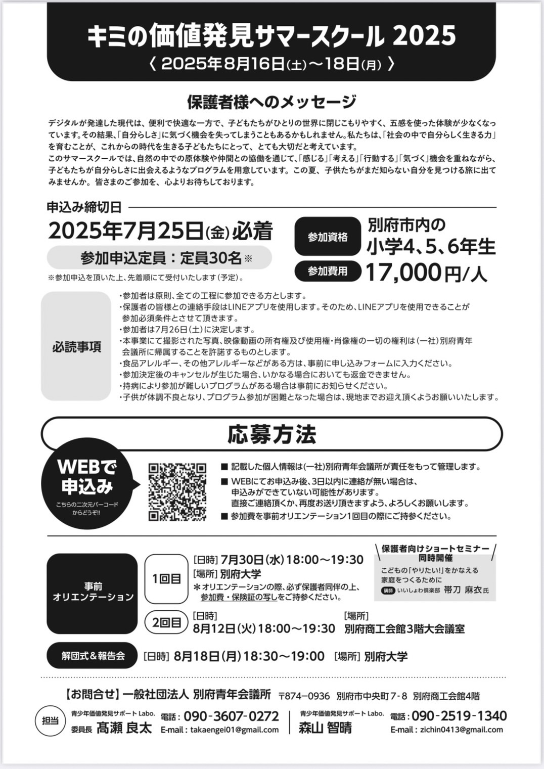 8月16.17.18日に【キミの価値発見サマースクール2025】が開催されます!