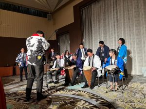 続く新春交流会では、協議会活性化委員会の佐藤委員長作曲のもと、12LOM合同による打楽器アンサンブル”共奏”の演奏からスタート。会場が一体となる盛り上がりを見せました。さらに、各メンバーが牡蠣殻に1年間の抱負を書き込み、牡蠣殻の神社に奉納する特別な時間を共有。未来への願いを込めたこの活動を通じて、12LOMの絆をより深める機会となりました。