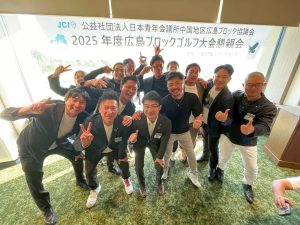 広島県内12の青年会議所メンバー、そしてOBの皆さまが参加され、ゴルフを通じて活発な交流が行われました。