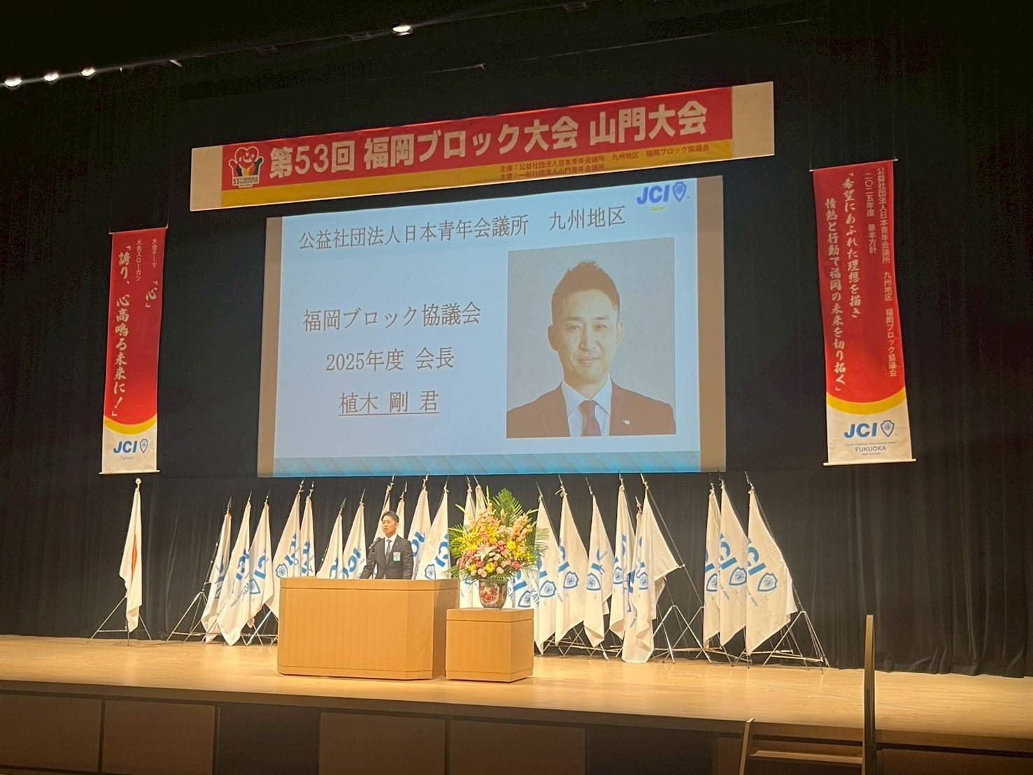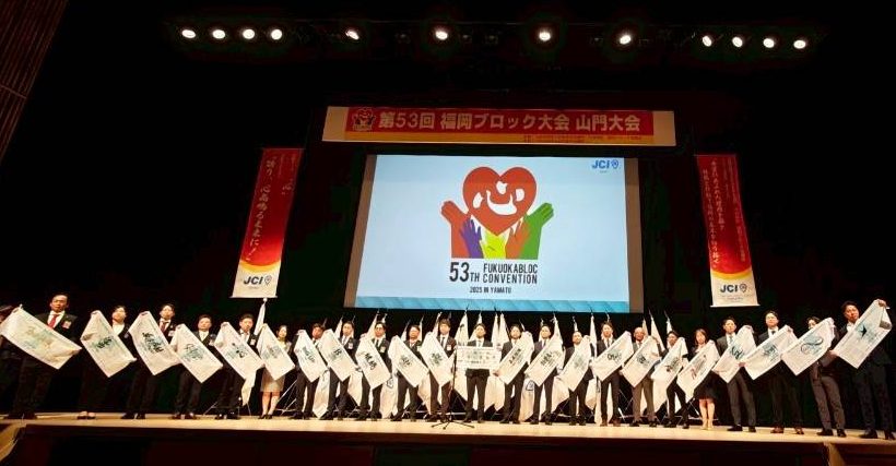 式典では2026年度福岡ブロック大会開催地が発表され、友情の鍵伝達式が執り行われました。