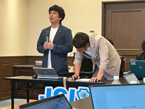 また、開催地LOMである船井青年会議所より、寺田理事長にお越しいただき、ご挨拶とお菓子を頂戴しました。寺田理事長、誠にありがとうございました。