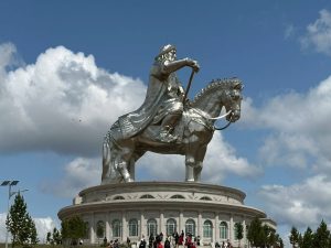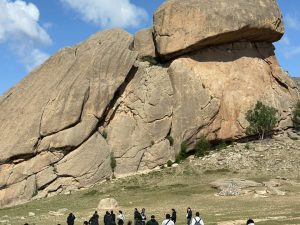 テレルジ近郊にて、巨石である亀石や、かの有名なチンギスハーン像の見学が行われました。モンゴルの大自然に聳える巨石・巨像に、モンゴルの雄大さを感じることができました。