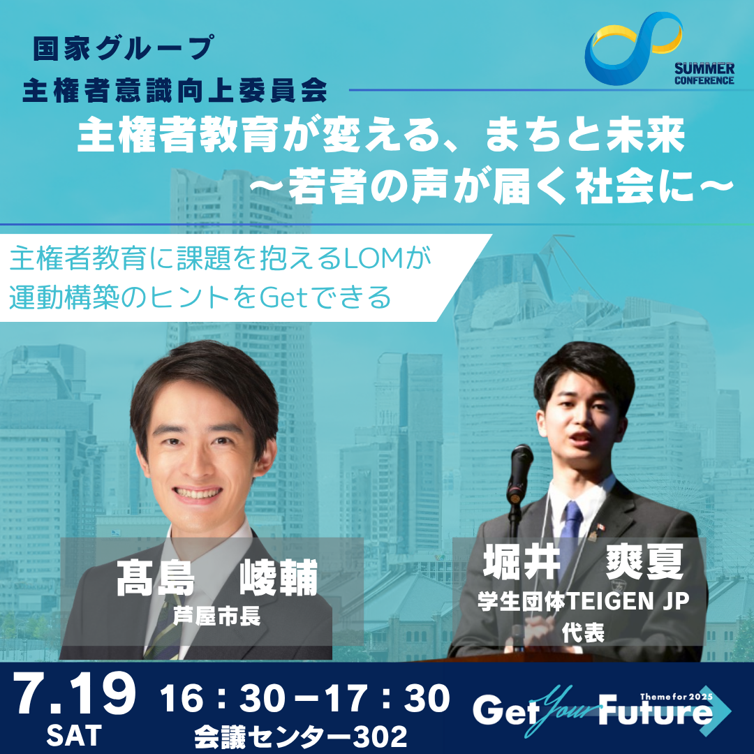 2025年7月19日(土)16:30よりパシフィコ横浜会議センター302にて「主権者教育が変える、まちと未来~若者の声が届く社会に~」を開催します。