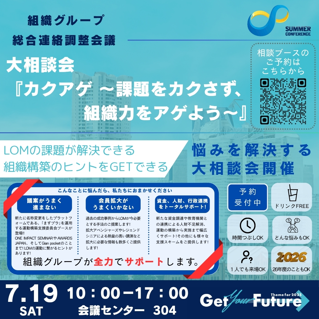 2025年7月19日(土)10:00よりパシフィコ横浜 会議センター304にて、LOMの課題解決および運動構築を支援するための特別相談ブースを設置いたします。