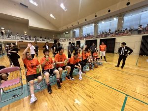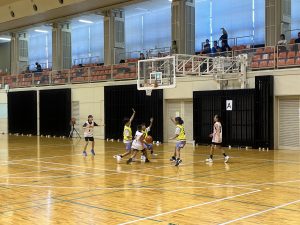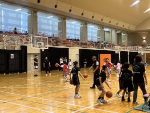 その後は記念事業として、オレンジバイキングスの選手と理事長らによるスペシャルマッチ、小池真理子さんから小学生を対象に3×3レクチャーと体験試合を。