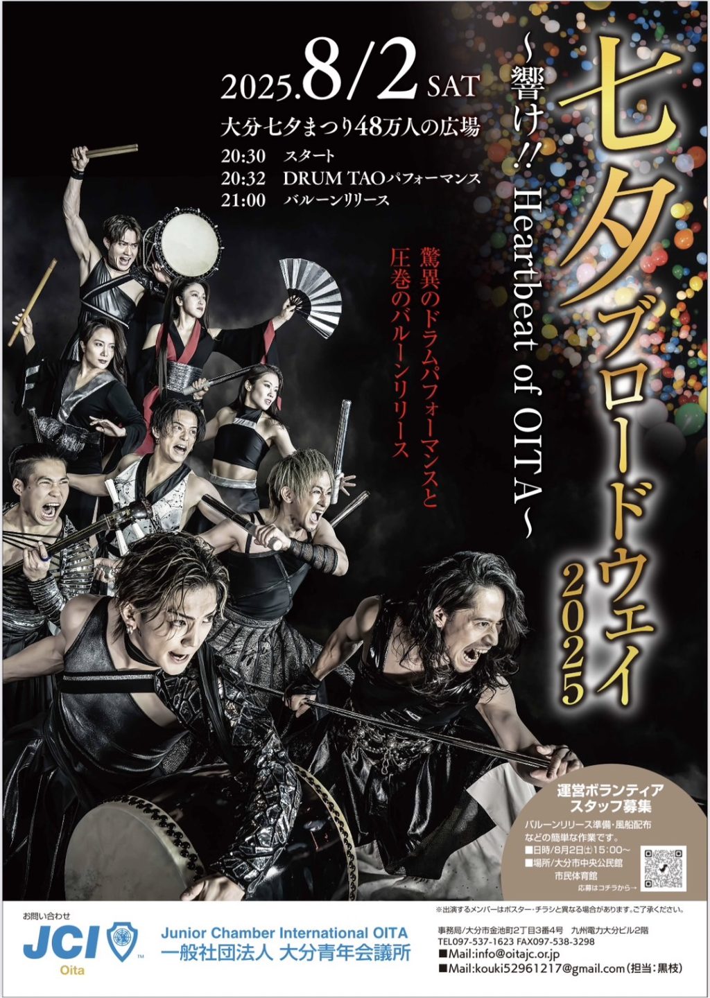 8月1日2日に大分市内にて「第44回大分七夕まつり」が開催されます。 2日土曜日に、20:30より大分青年会議所presents『七夕ブロードウェイ2025』が行われます。