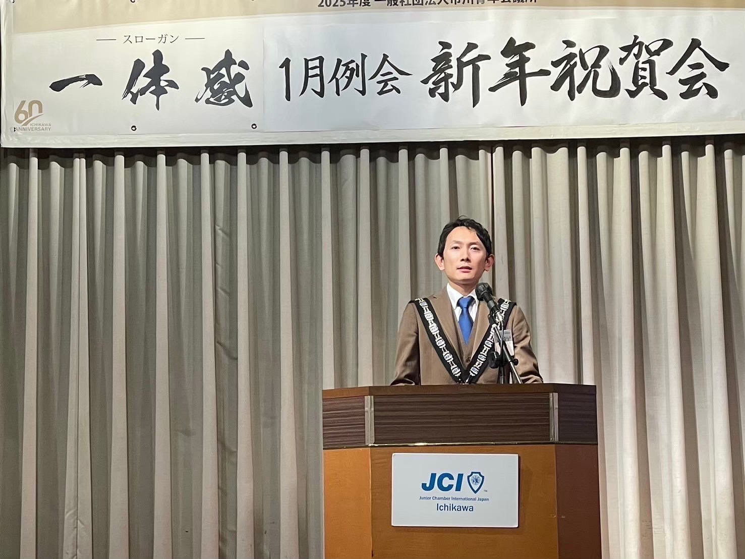 1月17日、一般社団法人市川青年会議所の新年祝賀会に参加させていただきました。 舊役哲史理事長の掲げる、『一体感』のスローガンの基、誠実さの伝わる素晴らしいメッセージが発信されました。 市川青年会議所からは國松監査担当役員、小林委員長をはじめといたします多くの出向メンバーをご輩出頂いております。