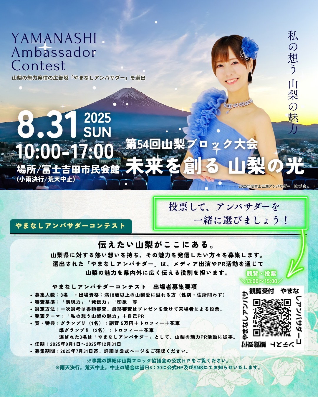 2025年9月1日〜12月31日の任期中、メディア出演や県内外へのPR活動など、山梨の魅力発信に取り組みます📣