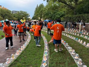長崎青年会議所の会員一丸となって、キャンドルの設置・撤去、交通整理、点灯作業などに取り組みました。