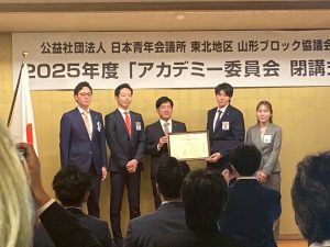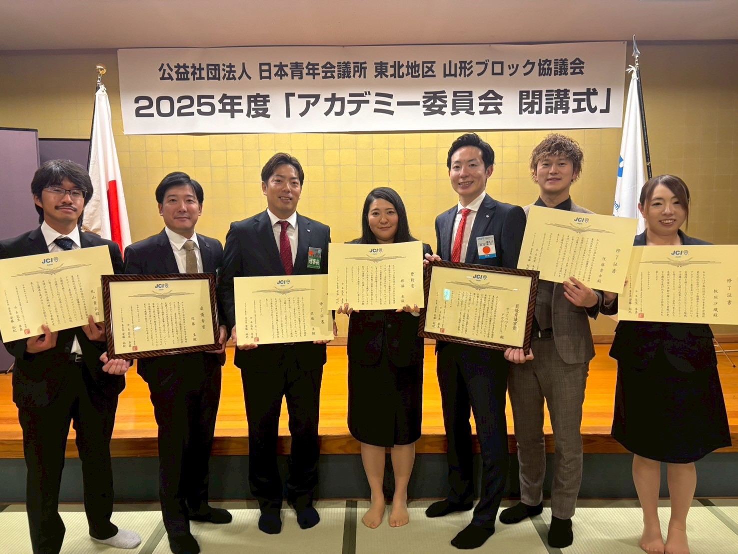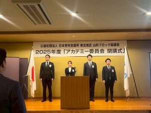 また、2025年度のアカデミー活動を締めくくる表彰式を開催し、1年間アカデミー期間中に積み重ねた努力や成果を明確に称えることで、今後のJC活動への意欲を高め、各青年会議所活動へのさらなる飛躍を期待する場とするため、修了証書授与式を執り行いました。