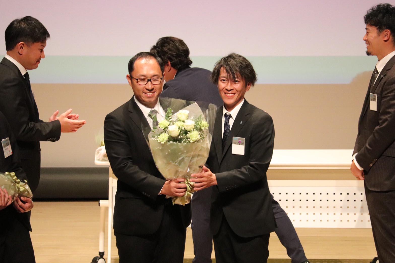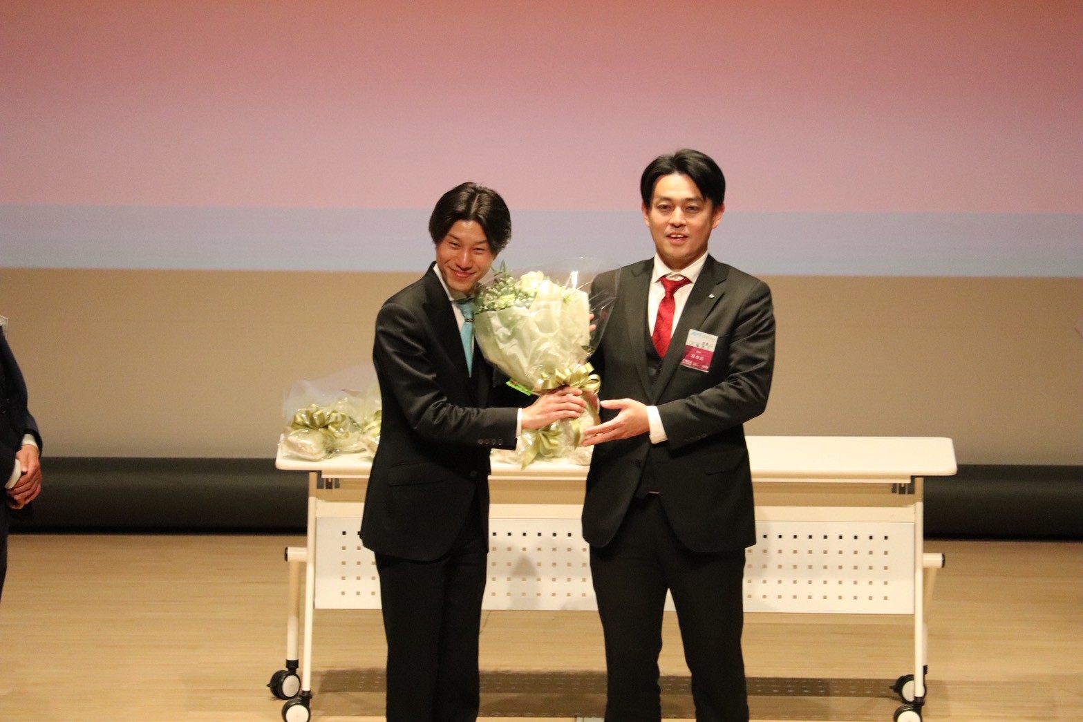 そして、2026年度から2025年度へ、1年間の歩みに敬意を込めて花束の贈呈。