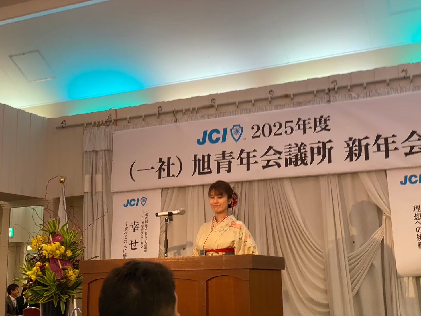 1月21日、一般社団法人旭青年会議所の新年会に参加させていただきました。 淺野 りえ理事長の掲げる、『幸せ〜すべての人に感謝を〜』のスローガンの基、誠実さの伝わる素晴らしいメッセージが発信されました。