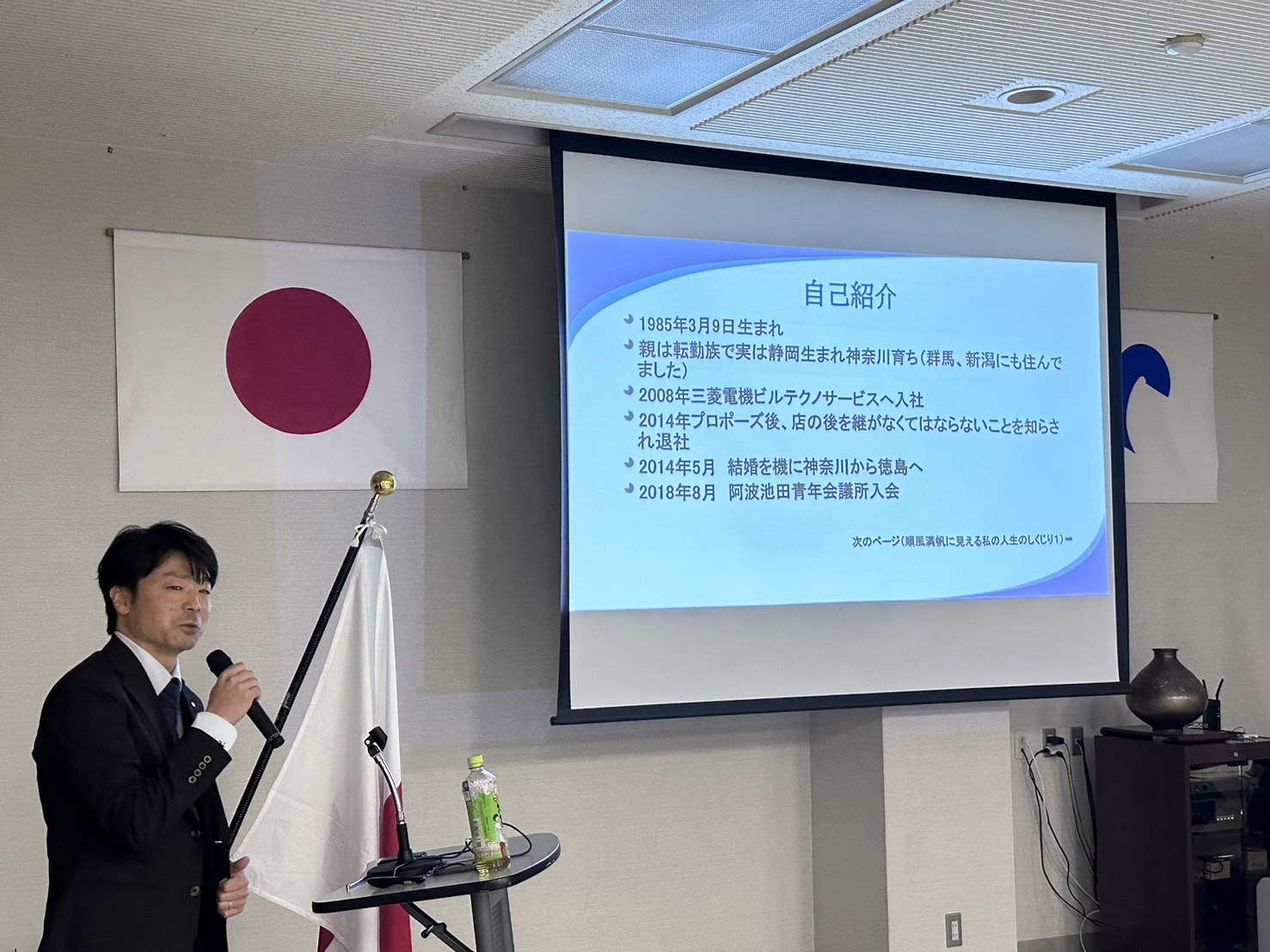 2月例会題して「JC版しくじり先生」、失敗から教訓を得てチャレンジすることの大切さについて、社会人時代またJC入会後に起きたしくじりを題材に鳴門板野青年会議所の今津理事長とともに講演させていただきました。