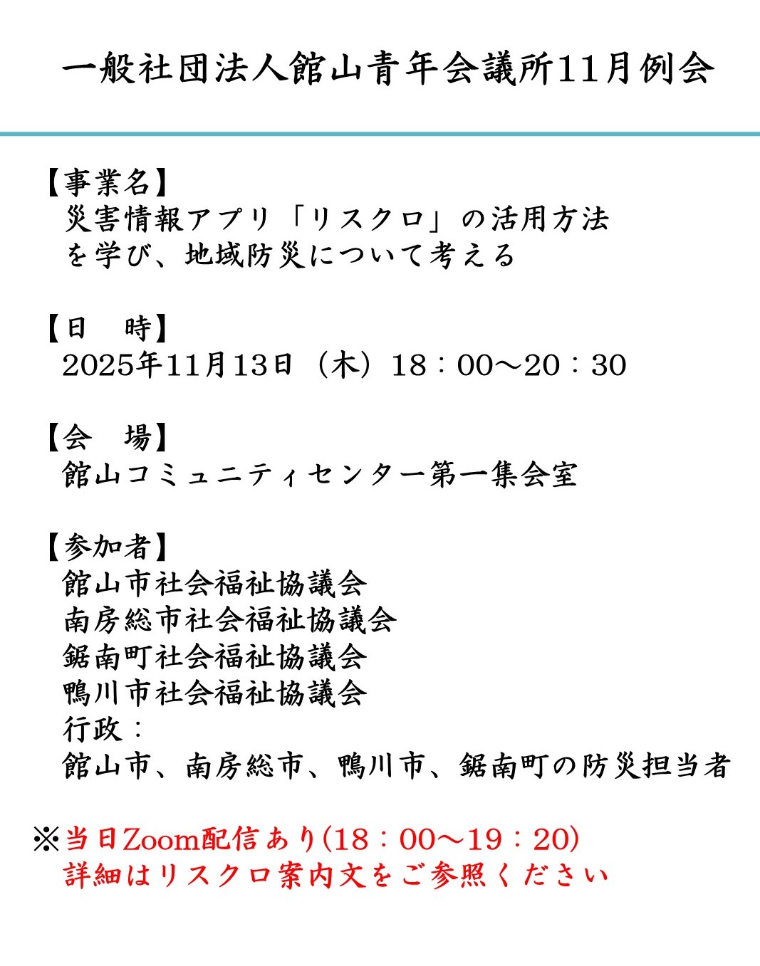 【開催告知】館山青年会議所 11月例会開催のご案内