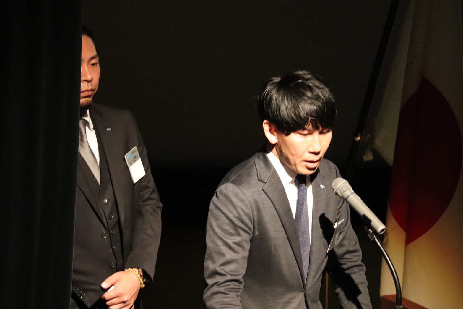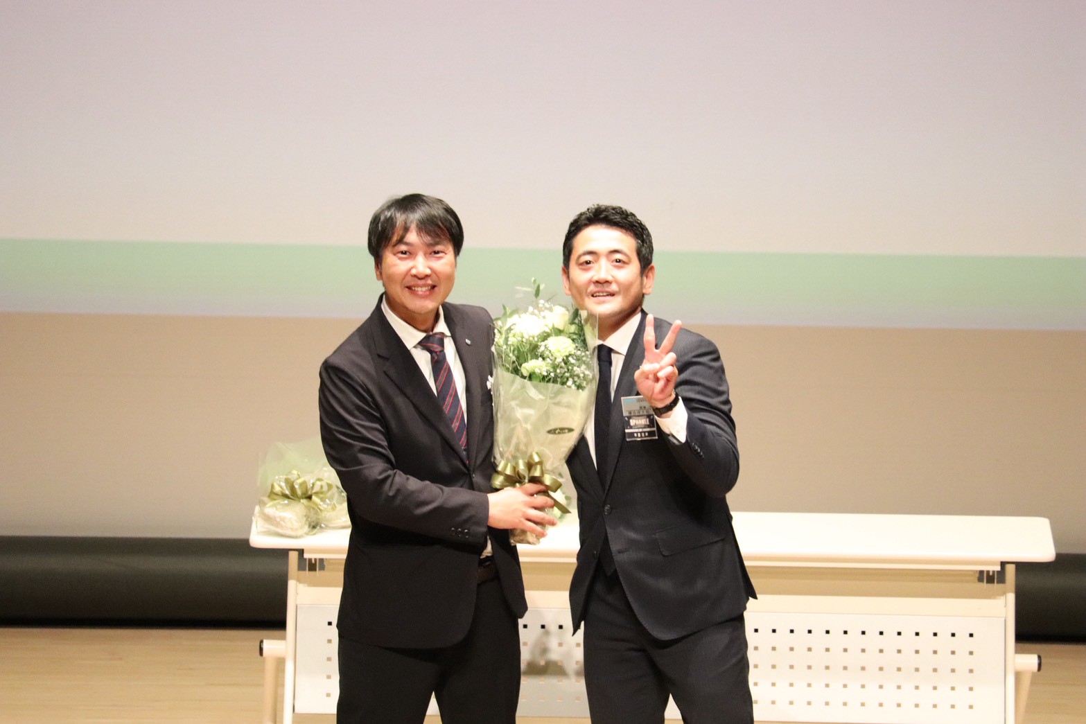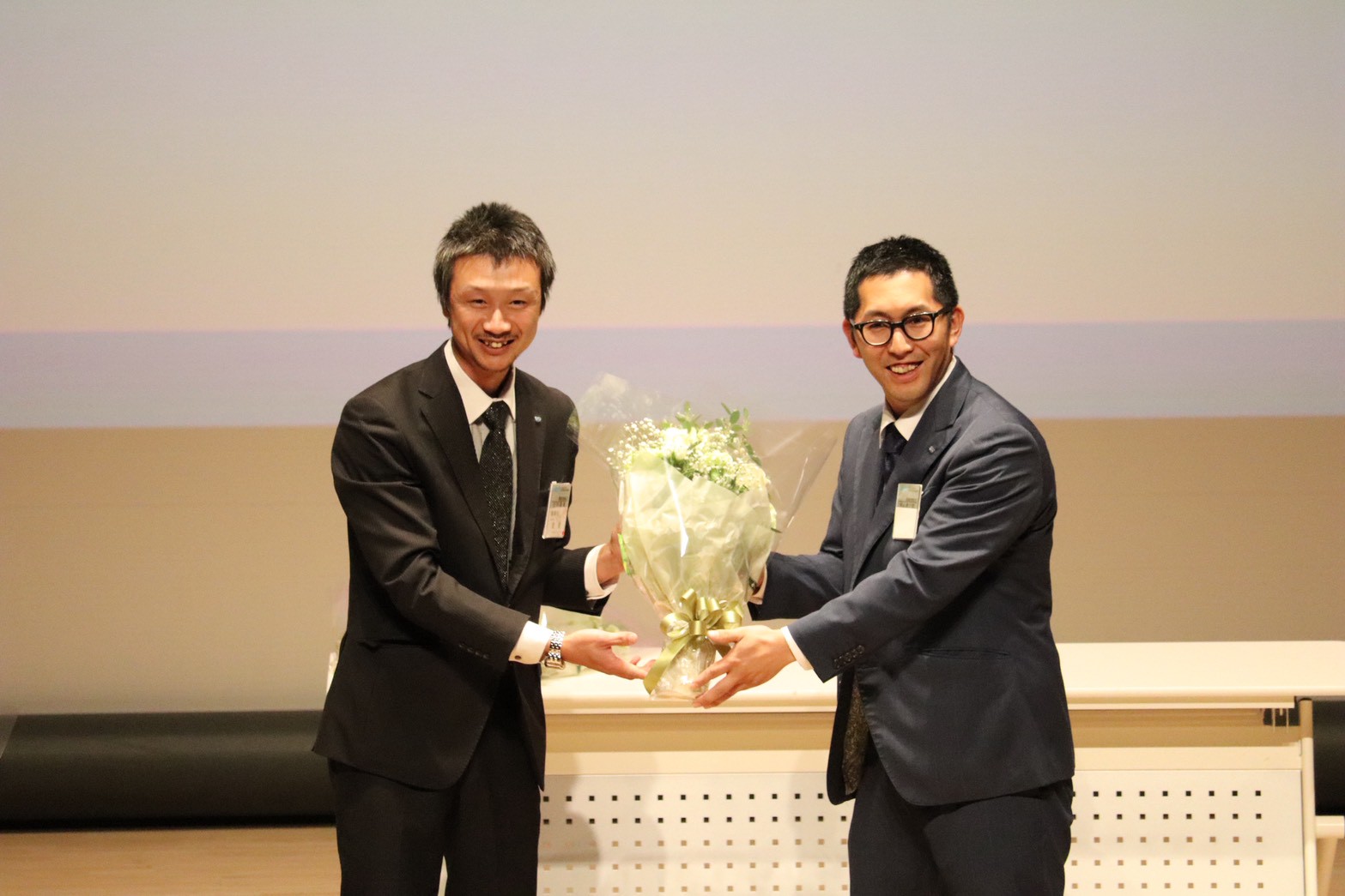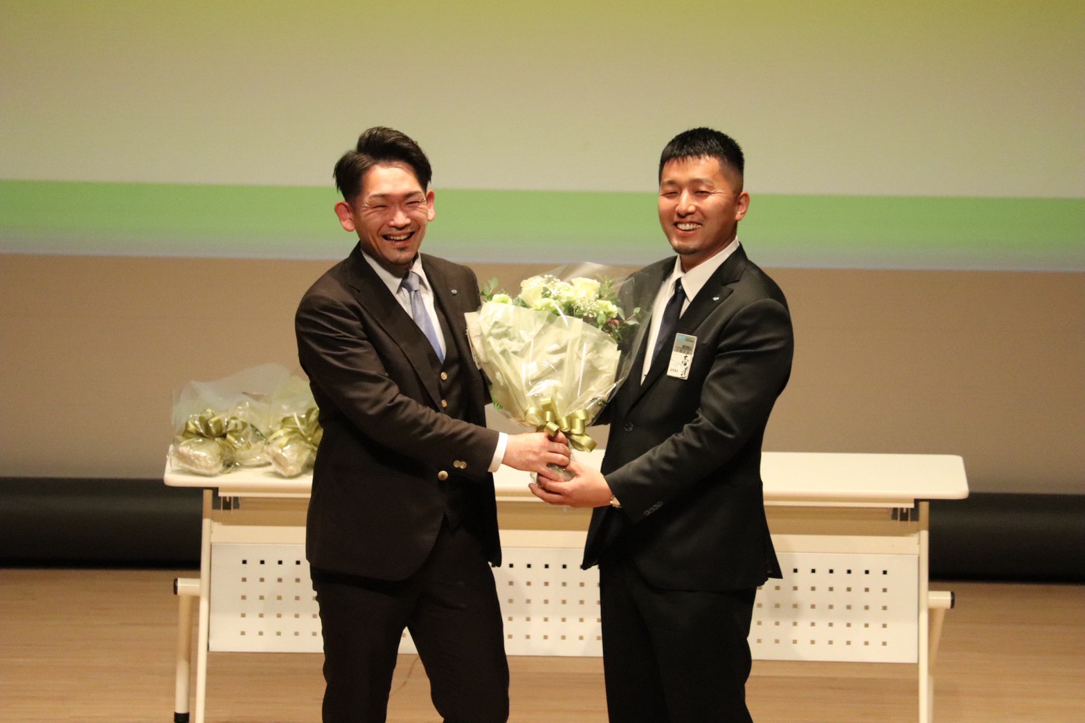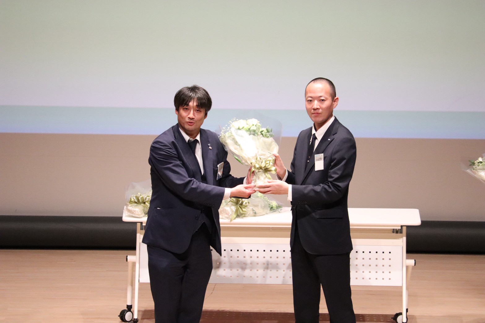 そして、2026年度から2025年度へ、1年間の歩みに敬意を込めて花束の贈呈。