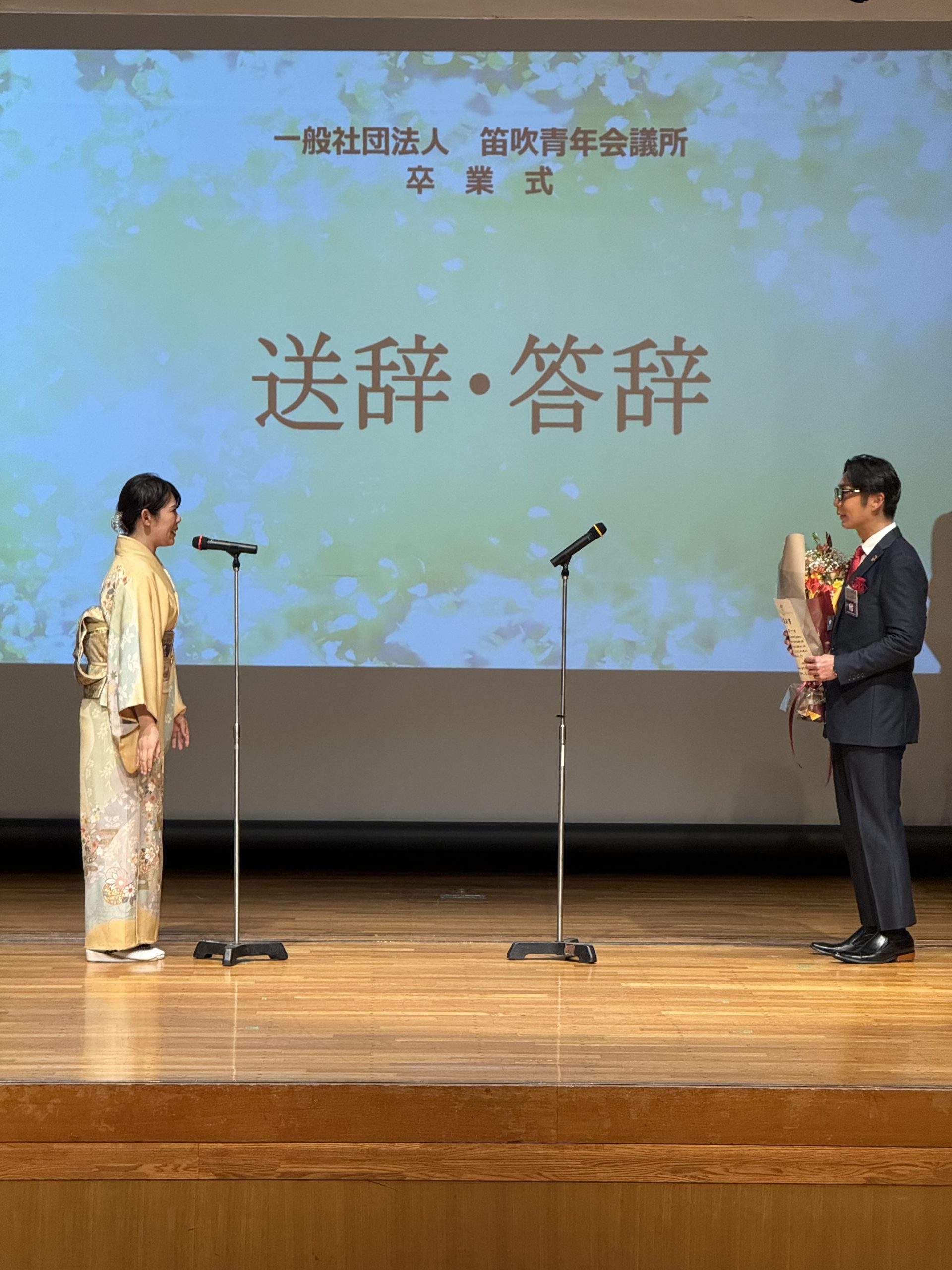 当日は、笛吹青年会議所の卒業生が登壇され、これまでの活動を振り返りながら、温かな雰囲気の中で門出を迎えられました。