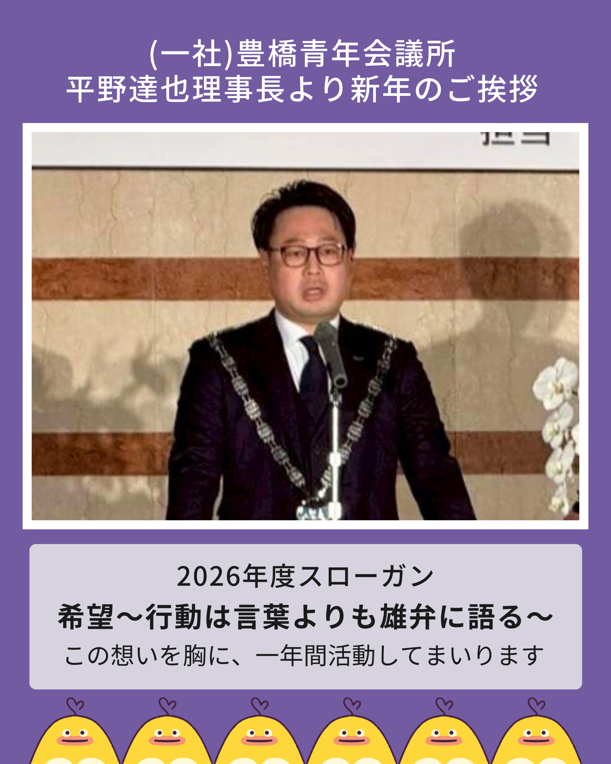 2026年度の活動が、100周年へ向けた確かな第一歩となるよう、全力で邁進してまいります。