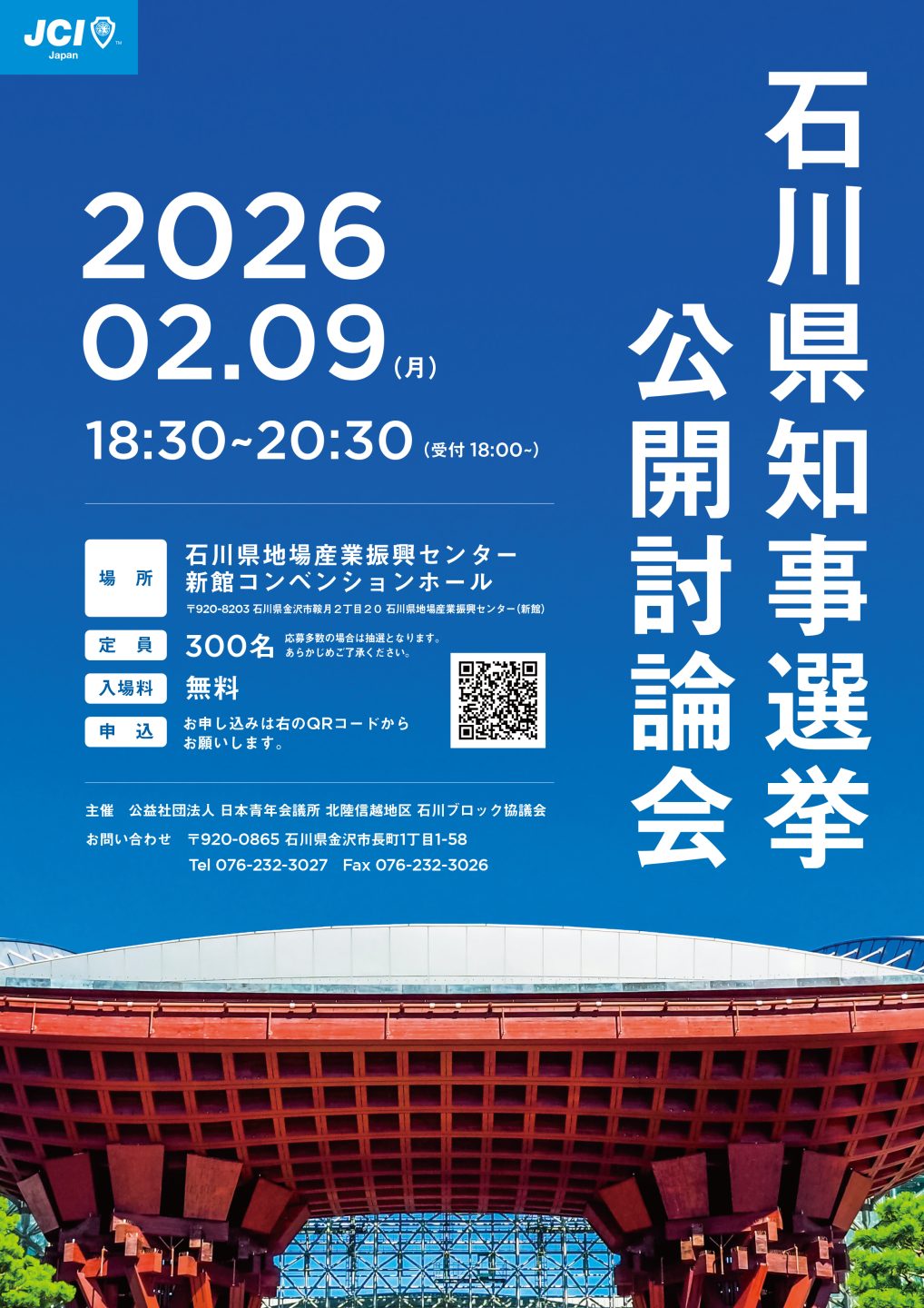 公益社団法人日本青年会議所 北陸信越地区 石川ブロック協議会では、石川県知事選挙 公開討論会を開催いたします。