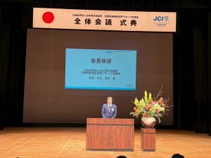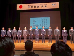 続く理事長紹介では、県内17LOMの理事長が登壇。各地の未来を見据えたスローガンと決意表明が発表され、それぞれの地域に懸ける熱い想いに会場の士気は一層高まりました。