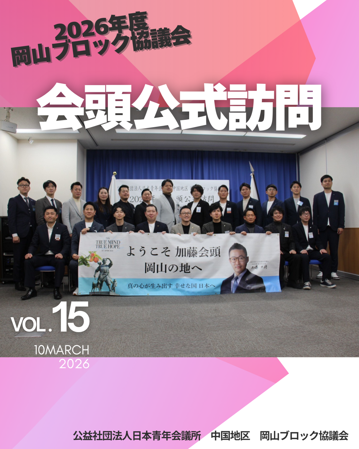 3月10日、岡山ブロック協議会にて公益社団法人日本青年会議所 会頭 加藤 大将 君をお招きし、岡山県内各地会員会議所の理事長の皆様と意見交換を行いました。