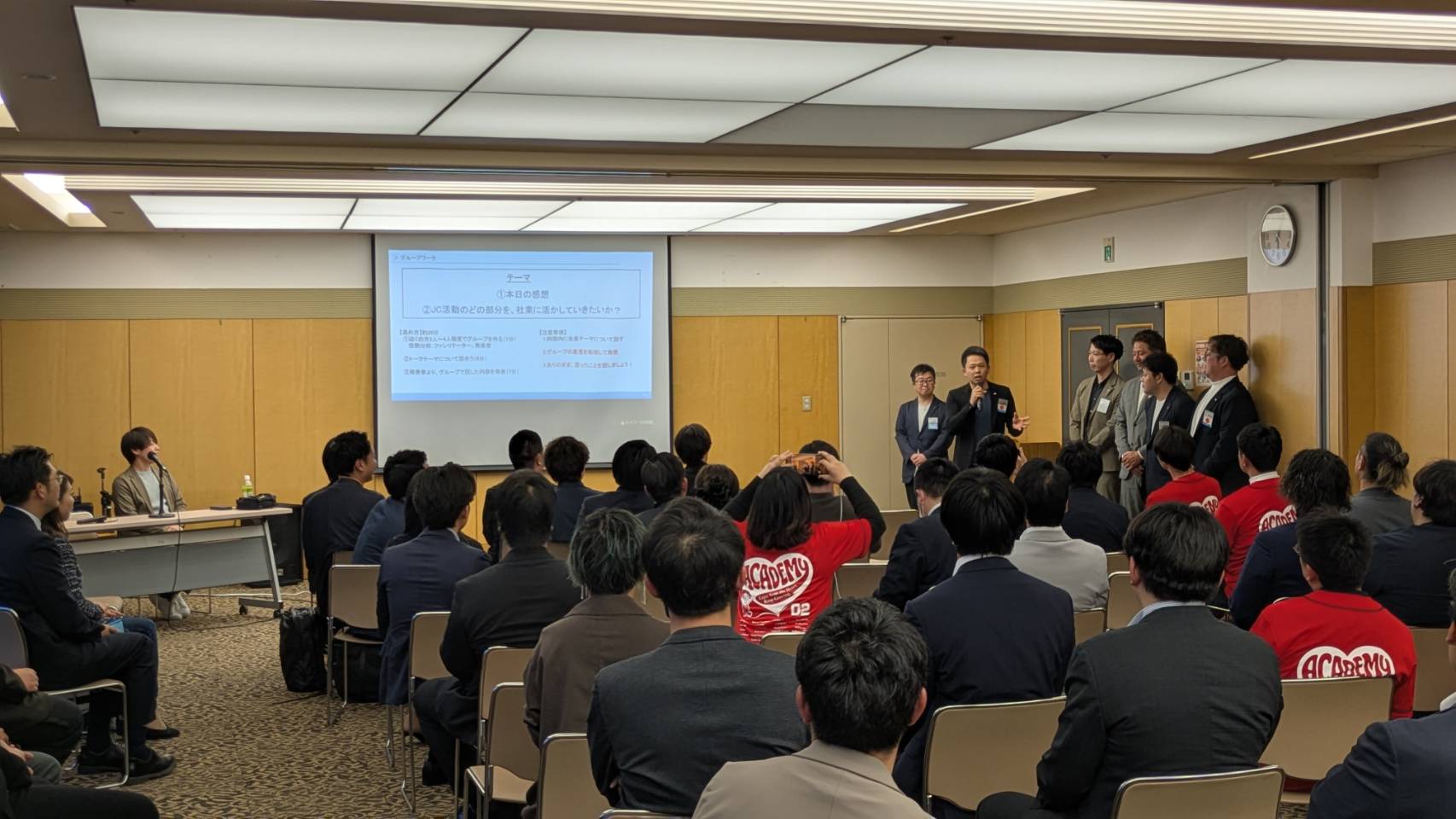 グループワークでは「ビジネスに活かせるJC活動とは?」「これからJC活動にどう関わっていくか?」 というテーマで、前向きかつ建設的な意見が飛び交 い、参加者一人ひとりが自らと向き合う濃密な場となりました。