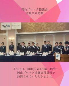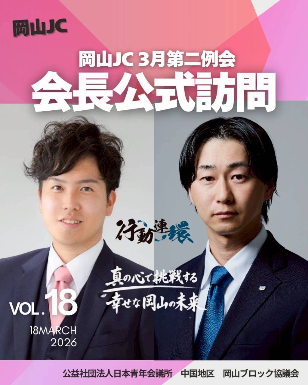 3月18日、2026年度会長公式訪問として、(公社)岡山青年会議所の3月例会へ参加して参りました‼️