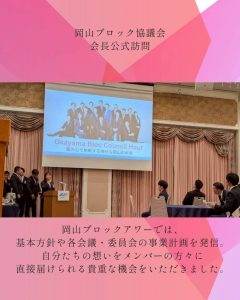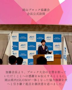 例会内では岡山ブロックアワーを通じて、岡山青年会議所の皆様へ我々の本年度の活動、運動を広く周知する機会となりました。📣