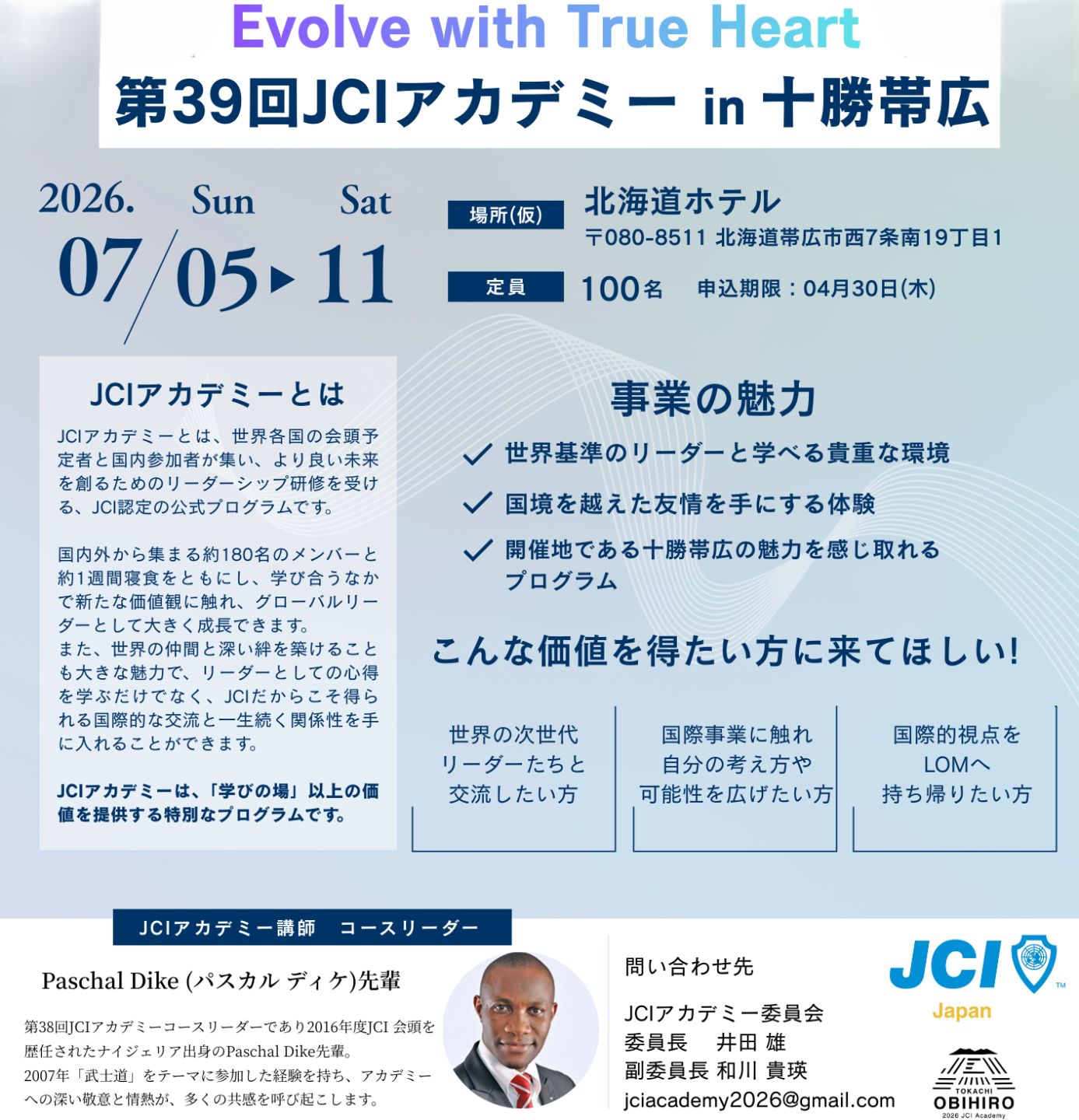 【世界約80カ国のリーダーが集結! 第39回JCIアカデミーin十勝帯広 開催のご案内】