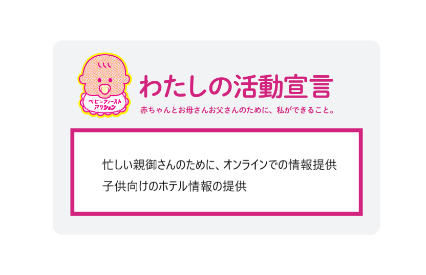 企業・個人 ドミ活の楽しみ方 2025.10.22 活動宣言 ドミ活の楽しみ方は、ベビーファースト運動に賛同します。メディア事業の強みを活かし、男女問わず育児と仕事の両立を後押しし、地域とともに「赤ちゃんにやさしいまち」をつくります。 アクションプラン ACTION01 チームへの情報共有 ACTION02 ポスター掲示 企業HPへ Tweet Share Hatena Pocket RSS feedly Pin it