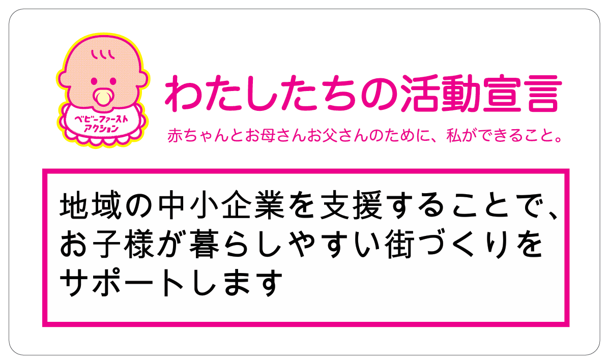 企業・個人 合同会社ニコット 2025.11.24 活動宣言 地域の中小企業を支援することで、お子様が暮らしやすい街づくりをサポートします! アクションプラン ACTION01 広告・SEO等のデジタル業務は特に長時間作業や画面前での業務が多いため、「フレキシブル勤務制度」「週1回の『早め終業デー』」「ルーチン休憩リマインダー」「立ち作業/ストレッチタイム」などを導入します。これにより、妊娠・出産を迎える従業員も働きやすい環境を整え、「赤ちゃんハッピー みんなハッピー」の理念に即した企業文化を醸成します。 企業HPへ Tweet Share Hatena Pocket RSS feedly Pin it