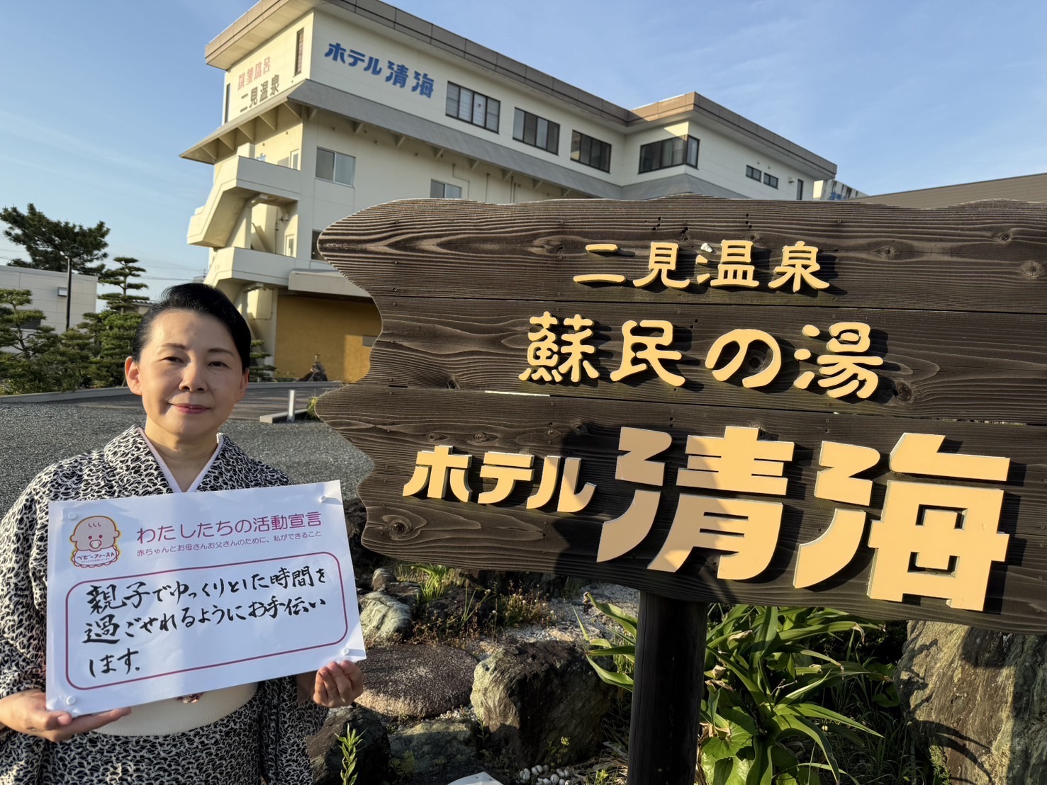 企業・個人 株式会社ホテル清海 2025.10.23 活動宣言 親子でゆっくりとした時間を過ごせるようにお手伝いします。 アクションプラン ACTION01 大浴場にてベビーベッドの用意 ACTION02 食事場所にてベビーチェアの用意 Tweet Share Hatena Pocket RSS feedly Pin it