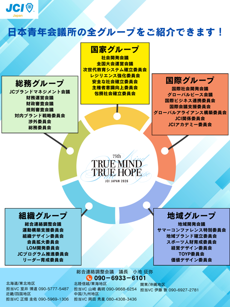 日本青年会議所が持つ魅力的な運動やスキームを活用して、各地区協議会や各ブロック協議会と連携を強化してともに全国各地のJC運動の質を高め全国のLOMの魅力を最大化し、運動を加速させていきます。