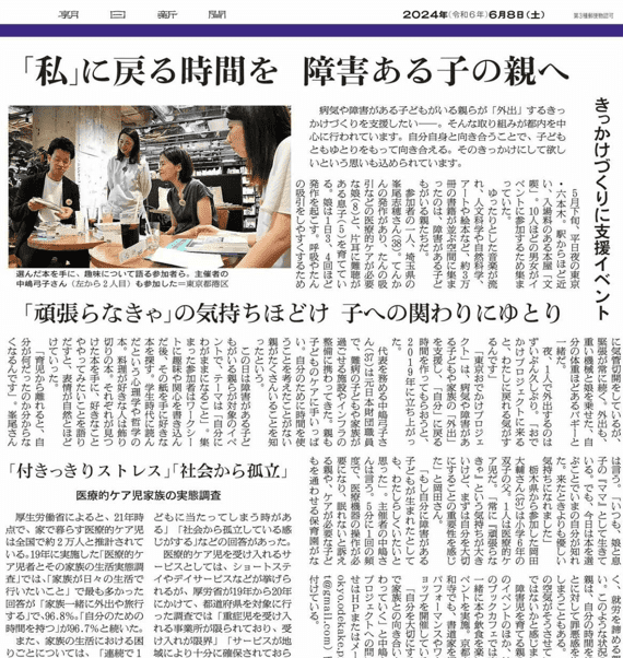 世界で1番赤ちゃんが安全に生まれる国、日本。しかし、医療技術の進歩によって救える命が増えると同時に、医療的ケアを日常的に必要とする「医療的ケア児」と呼ばれる子ども達や、病気や障害のある子どもが日本では増えています。「呼吸器などの医療機器が必要だと、アラーム音が鳴ったり周りの目が気になっておでかけしづらい」 どんなに施設や制度といった社会的なインフラが整っても、病気や障害がある子どもと家族が安心して人の目を気にせずおでかけできる環境はまだまだ足りていません。子どものケアに手一杯で、自分の時間を持つことが難しいご家族からは「わたしって何が好きだっけ」という声も。 どんな病気や障害があっても、「行きたい場所へおでかけできる社会」を実現するとともに、当事者や支援者という言葉を超えて人がフラットにつながれるように「街の人の目を変えていく」未来を実現したいと考えています。