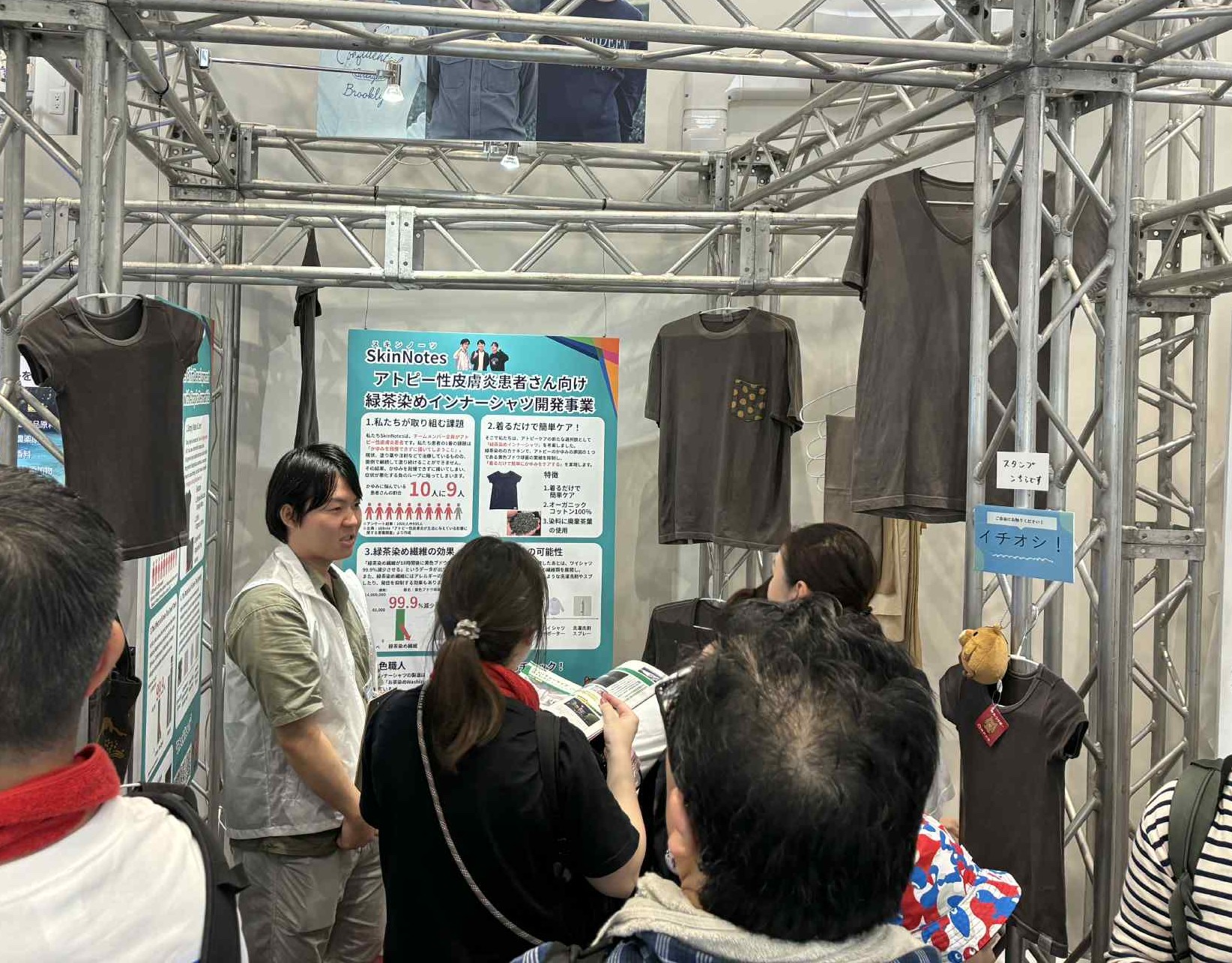 SkinNotesは、アトピー性皮膚炎や敏感肌の「かゆみ・掻破・睡眠悪化」といった生活課題に対し、緑茶染めインナーシャツ/手袋を中心とした、「着るだけでケアできる製品」を開発・販売しています。