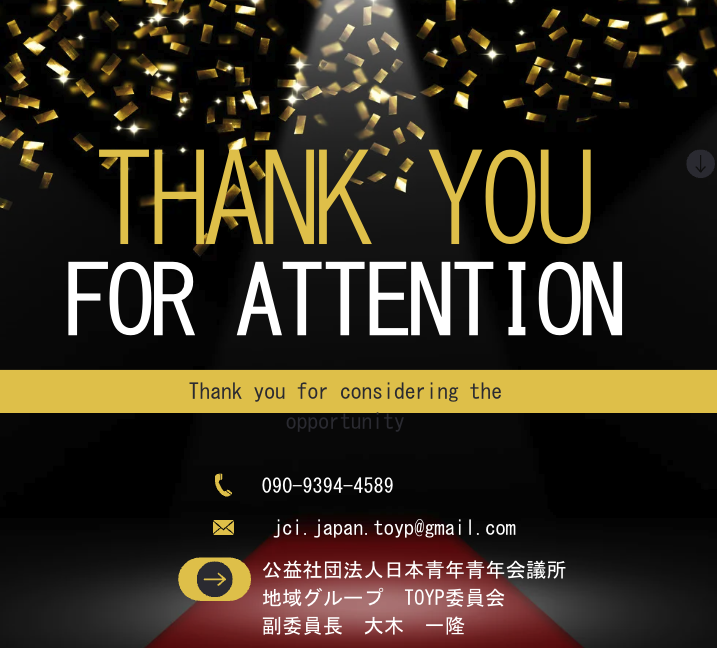 また、受賞者の中から日本代表としてJCI TOYP世界大会へ推薦します。