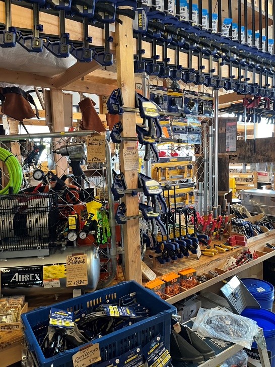 兵庫県の三木市は金物や大工さんが使う道工具、のこぎり・ハンマー・コテなどを作る金物の産地です。弊社は各メーカーさんが作った商品、金物関係を仕入れ、全国のホームセンターやEC事業者、各小売店さんへ、B to Bの卸の仕事をすることが本業となっています。