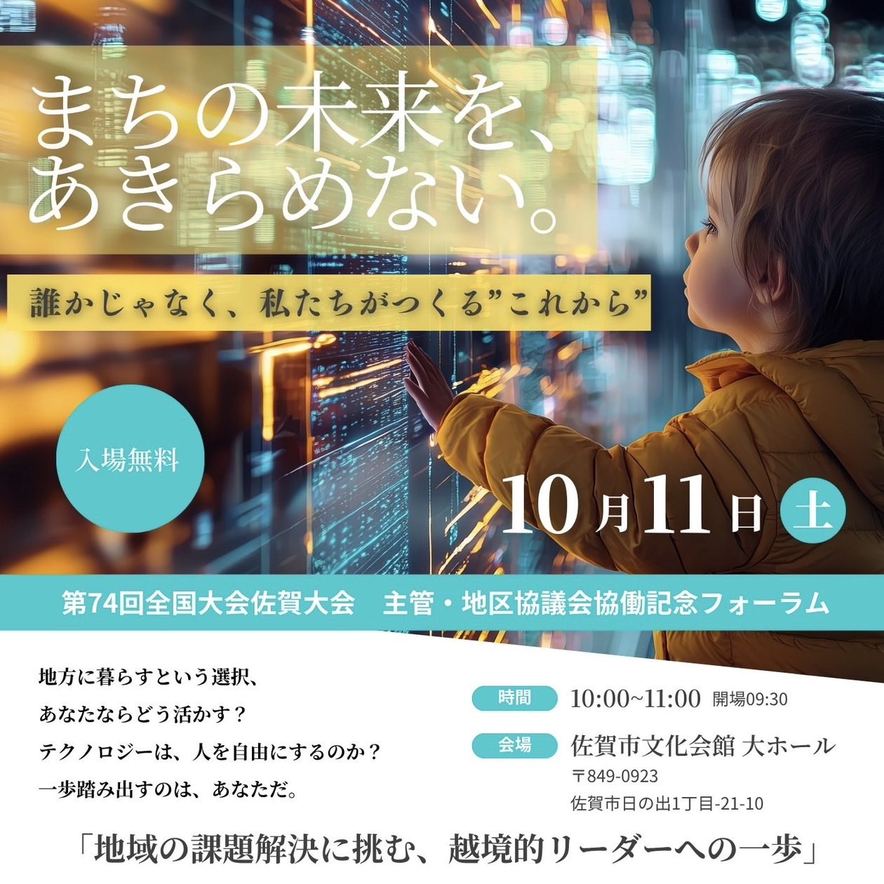 参加者は、地方の可能性、テクノロジーと暮らしの共存、そして挑戦のリアルを通じて、「自分が動く」ことの意味を受け取ることができます。フォーラム終了後には、地域の未来を「自分ごと」として語り、行動へと繋げる意識の変化を目指します。